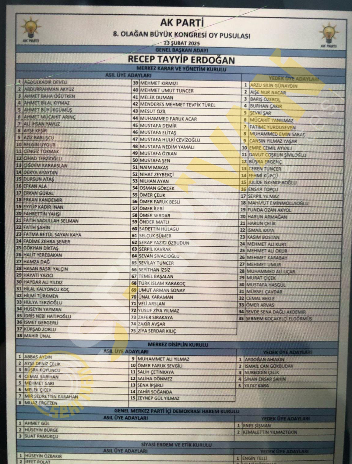 AK Parti'de 23 Şubat'ta (bugün) yapılan 8.Olağan büyük Kongresi’nde AK Parti'de yeniden şekillenecek MKYK listesine kimlerin gireceği merak konusu olmuştu. Daha önce Şehrivan Gazetesi’nin edindiği kulis bilgilerine göre yapılan haberlerde de açıklanan isimler belirtilmişti.
