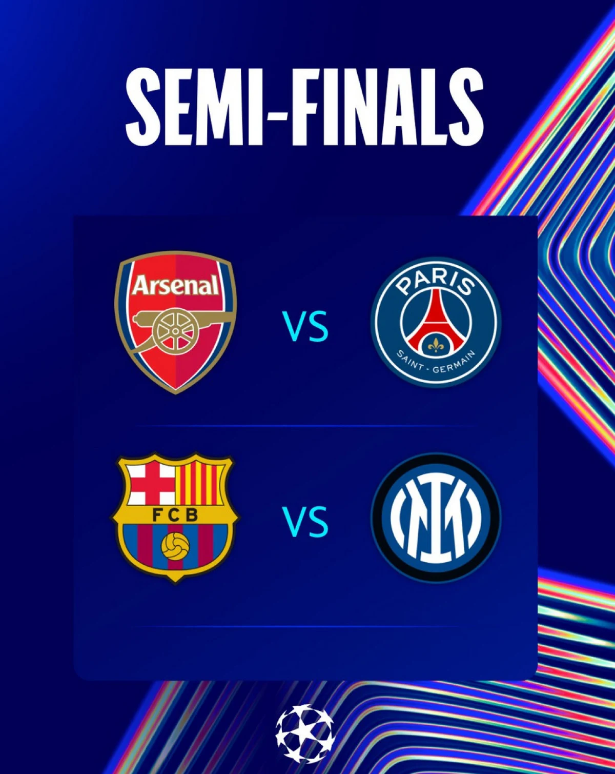 Inter, yarı finalde Barcelona'yla karşılaşacak. Arsenal ise yarı finalde Paris Saint-Germain ile oynayacak. Yarı final ilk maçları 29-30 Nisan, ikinci karşılaşmaları ise 6-7 Mayıs tarihlerinde oynanacak.