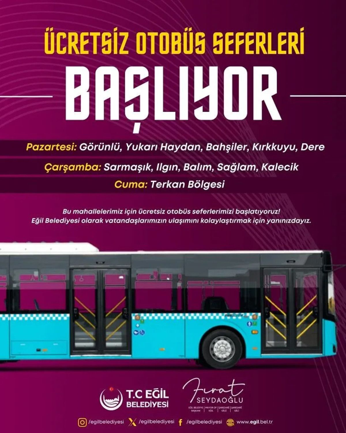 Diyarbakır’ın Eğil Belediyesi, vatandaşların ulaşımını daha konforlu ve erişilebilir hale getirmek amacıyla mahallelere ücretsiz otobüs seferleri başlattı.