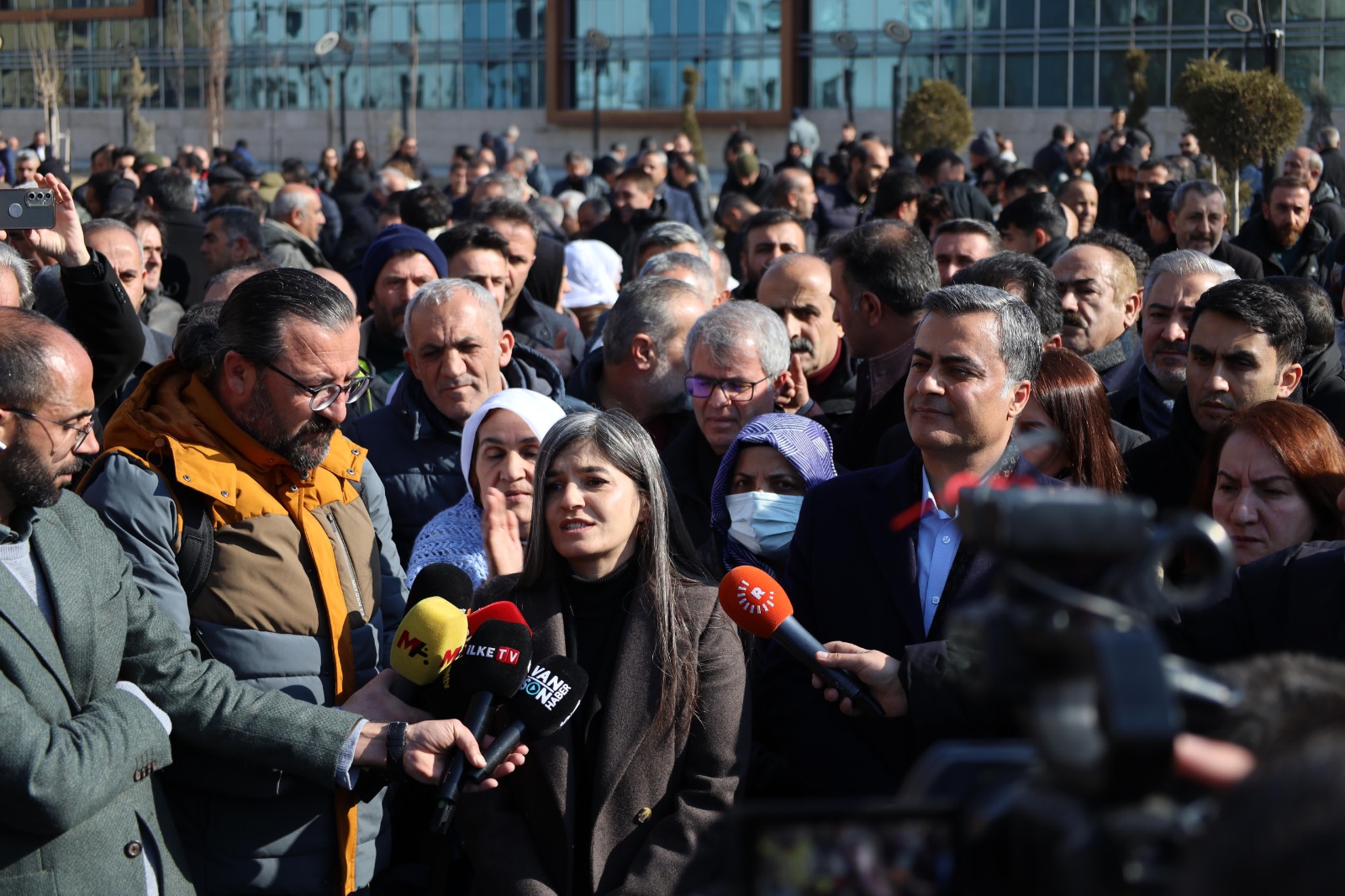 Basın açıklamasında konuşan DEM Parti Eş Genel Başkanı Tülay Hatimoğulları “Van halkı 31 Mart’ta bir tarih yazdı. Sizler 31 Mart’ta bu haksızlığa ‘dur’ dediğiniz için bugün rövanş almak istediler. Abdullah Zeydan hem bilirkişi raporu, hem de jandarmanın ifadelerinde suçsuz olduğu ispatlandığı halde kararın bu şekilde çıkması bunu gösteriyor. Bu halktan öç almak isteyen bir yaklaşımdır. Van halkının 14-0 başarısını hazmedemeyen bu iktidarın uygulamasıdır. Kar ve kış demeden havanın eksi derecelerde olduğu kentte belediyede nöbet tutan halkımızı gördük. Bunun için Van halkına binlerce kez teşekkür ediyoruz” ifadelerini kullandı.