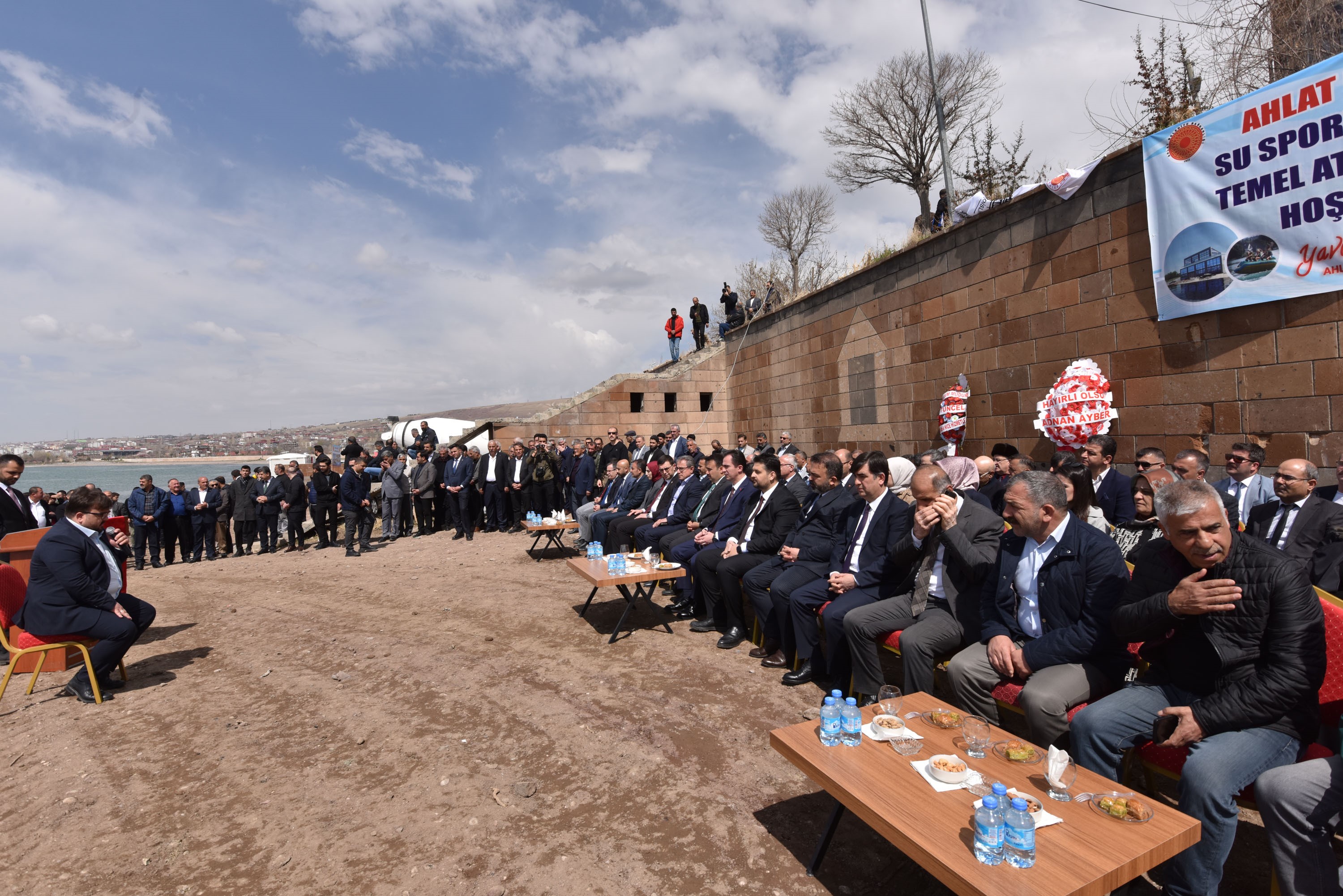 Ahlat Belediye Başkanı Yavuz Gülmez ise açılışa katılan herkese teşekkür ederek, 3 etaptan oluşan projelerinin temel atma töreninde bir arada olmaktan duyduğu sevinci dile getirdi. Başkan Gülmez, projenin detayları da ilgili bilgiler paylaşarak, "Birlikteliğimizin memleketimiz ve ülkemiz için hayırlar getirmesini niyaz ediyorum. Milletimize karşı görevlerimizi hakkıyla yerine getirmenin çabası içerisinde olduk. İşte bu vesileyle büyük bir aşkla giriştiğimiz ve Ahlat'ı bir cazibe merkezi haline getirecek projelerden biri olan su sporları merkezinin temel atma töreni için bir aradayız. Yaklaşık 20 bin metrekare alan üzerine inşa edeceğimiz projemizde 3 katlı 988 metrekare inşaat alanına sahip binamızda kayıkhane, revir, bay bayan mescit, duş ve giyinme kabinleri, kafeterya ve teras ile halkımızın hizmetinde olacağız" dedi.