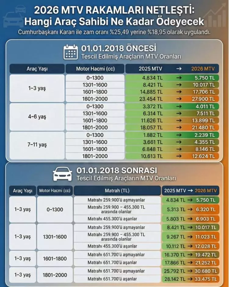 01.01.2018 öncesinde tescil edilmiş araçların MTV oranları belli oldu: