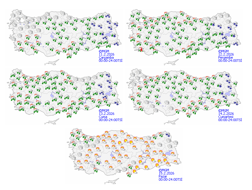 Meteorolojiden yapılan değerlendirmelere göre: Ülke genelinden havanın parçalı ve çok bulutlu olması beklenirken Ege (Kütahya hariç), Akdeniz, Doğu Karadeniz, Doğu ve Güneydoğu Anadolu ile Çanakkale, Balıkesir, Konya, Karaman, Sivas, Ordu ve Tokat çevrelerinin aralıklı yağışlı geçeceği tahmin ediliyor. Yağışların genellikle yağmur ve sağanak, Doğu Karadeniz’in iç kesimleri, Doğu Anadolu’nun doğusu ile Sivas çevrelerinde karla karışık yağmur ve kar şeklinde olması bekleniyor. Yağışların, Osmaniye, Hatay, Ardahan, Bitlis, Hakkari, Şırnak, Diyarbakır, Batman ve Siirt çevreleri ile Artvin'in iç kesimlerinde yer yer kuvvetli olacağı tahmin ediliyor.
