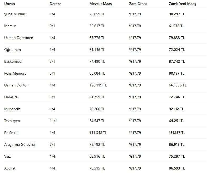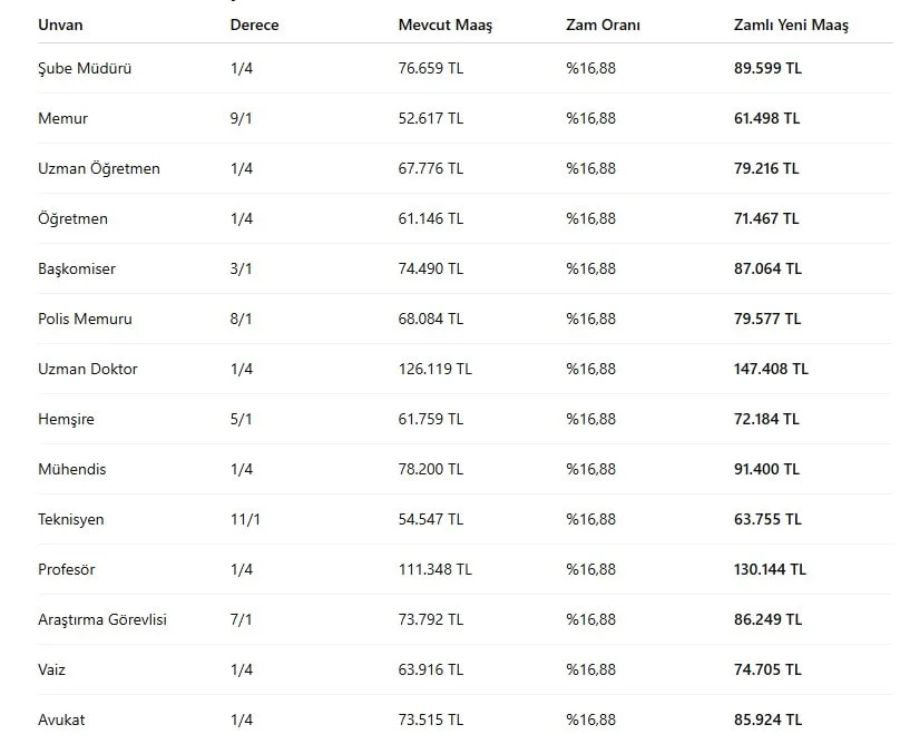 Polis, öğretmen, vaiz, hemşire ne kadar zam alacak? İşte yeni zamlı maaşlar;