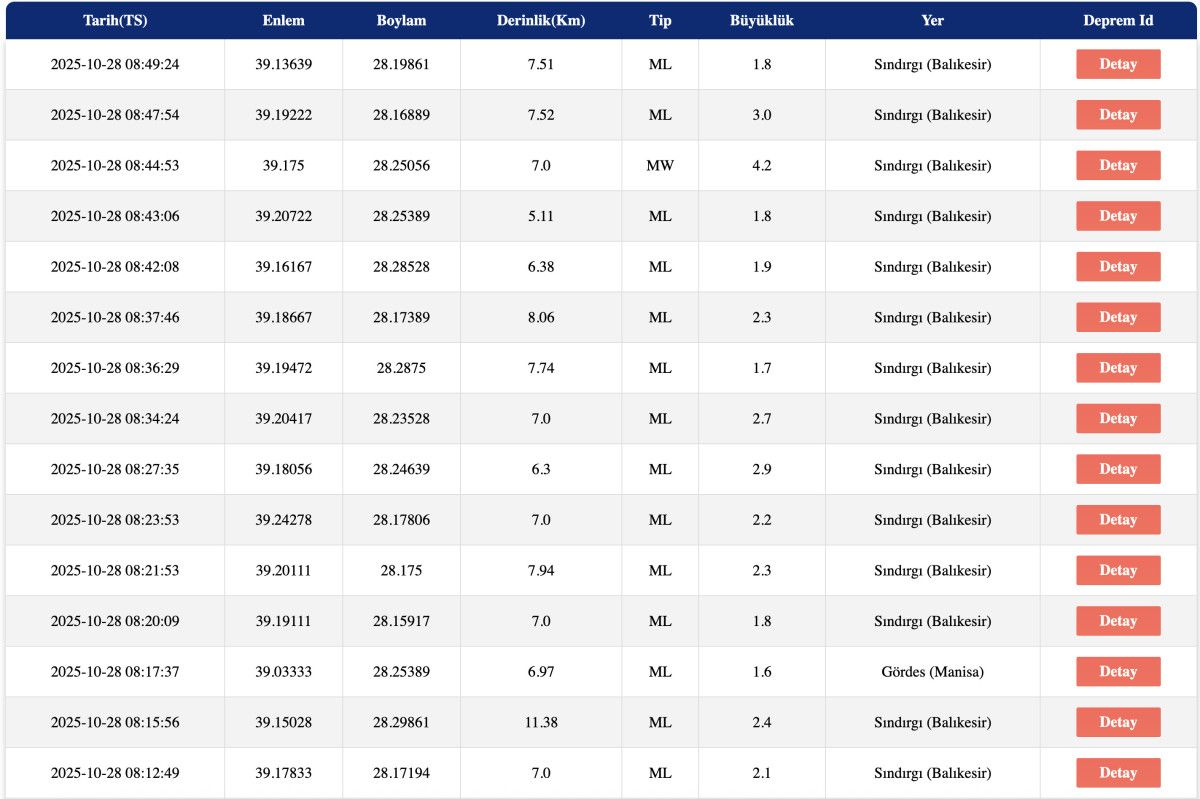 İşte Sındırgı merkezli saat 22.00'den sabaha kadar yaşanan 3.0 üzeri artçı sarsıntılar: