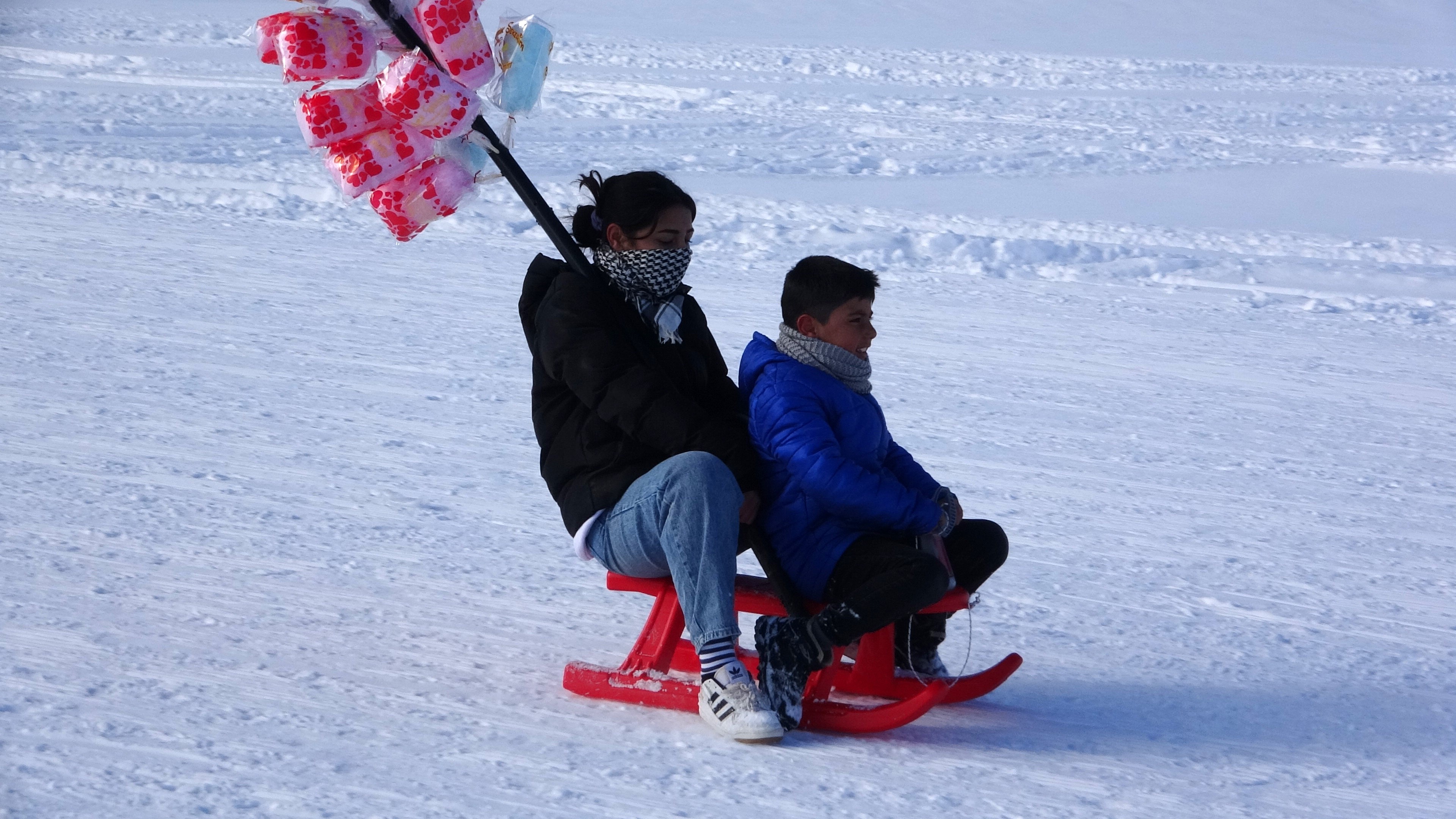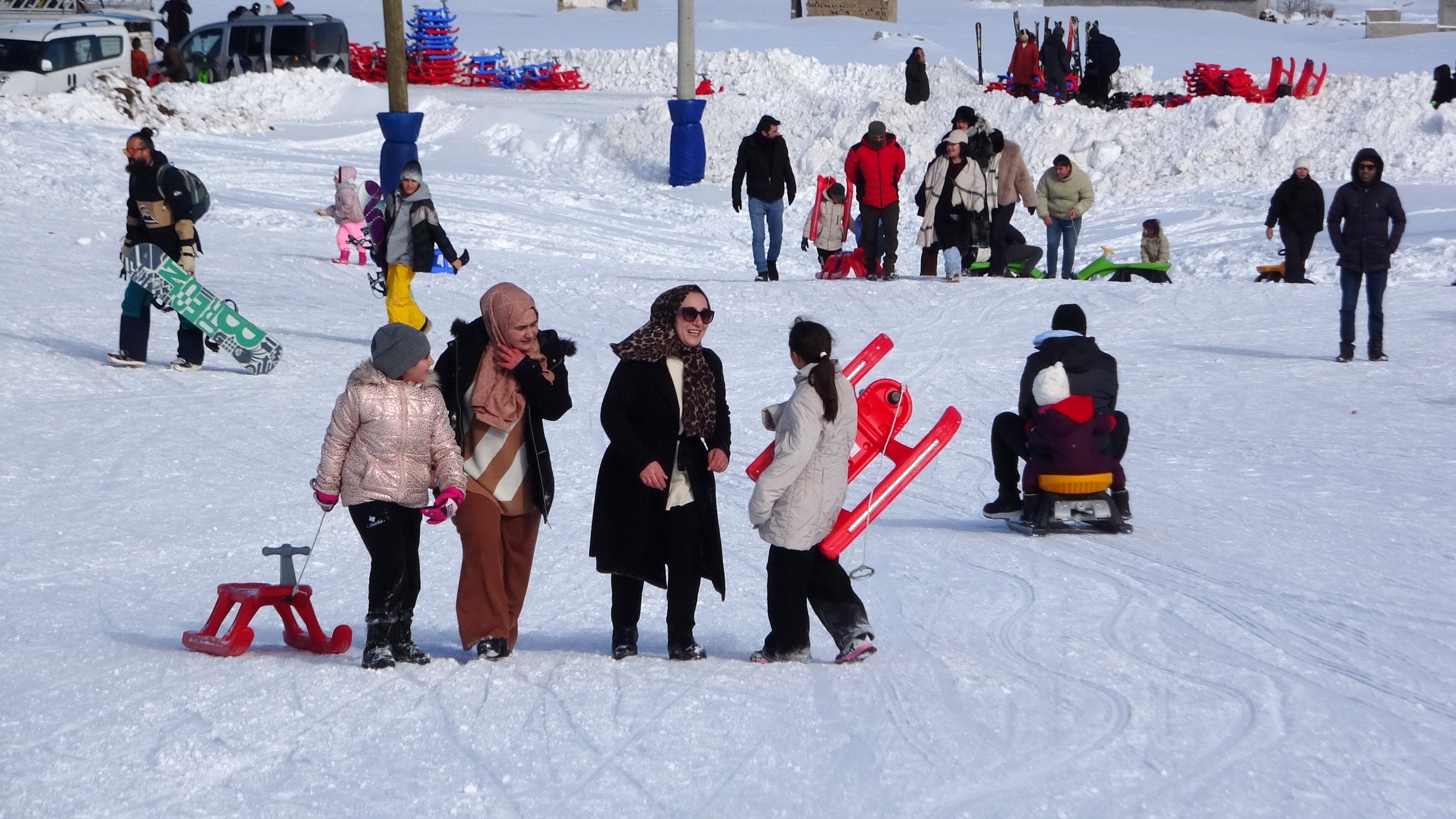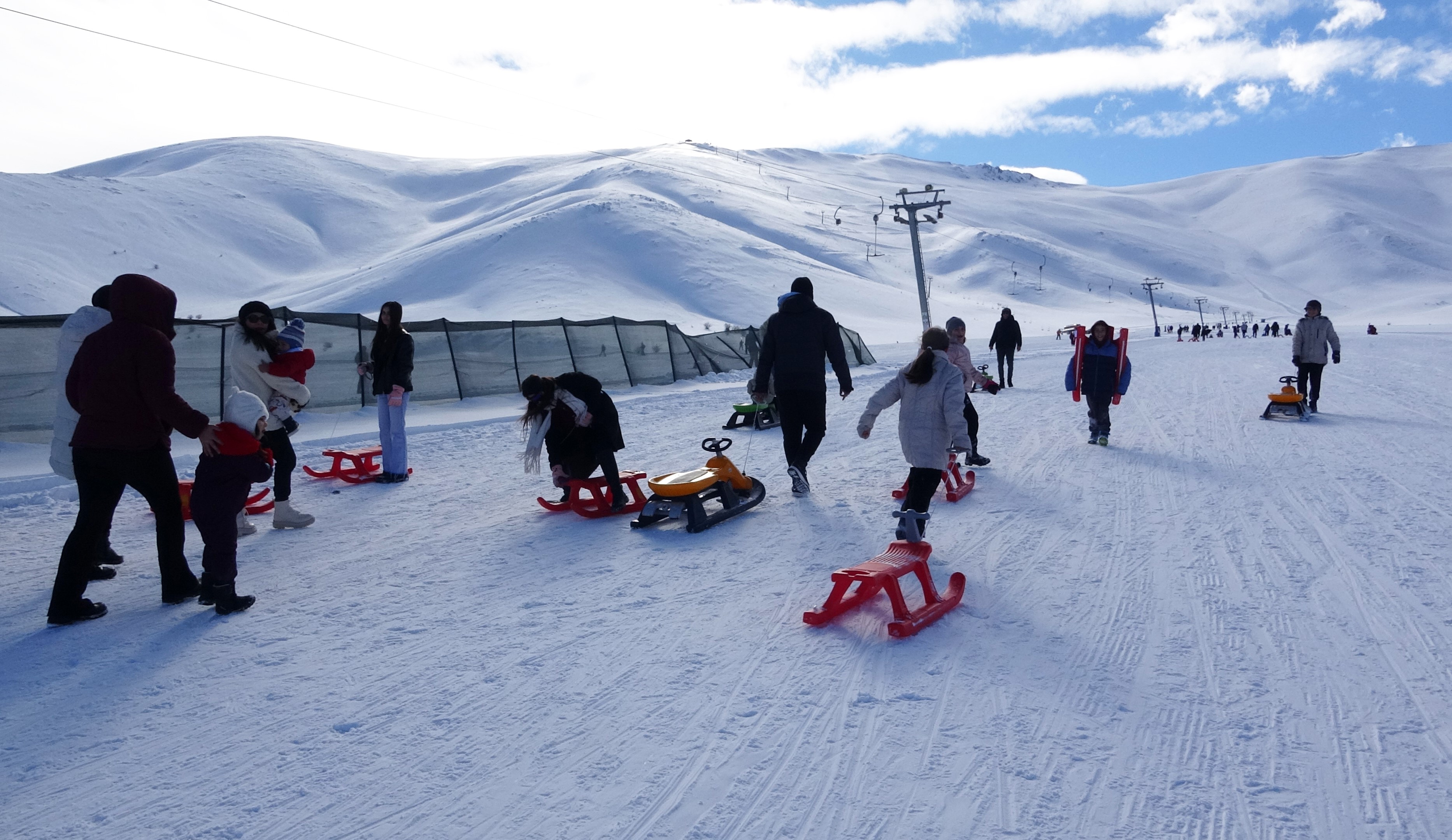 Aileleriyle birlikte kayak merkezine gelen çocuklar, kayak ve kızakla kaymanın heyecanını yaşarken pistlerde renkli görüntüler oluştu. İlk kez kayak yapan çocukların mutluluğu yüzlerine yansırken, aileler de çocuklarının sevincine ortak oldu. Tatili fırsat bilen aileler, çocuklarıyla birlikte kayak merkezinde keyifli ve unutulmaz anlar yaşadı.