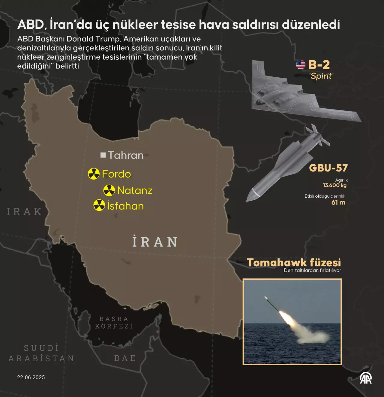 Dışişleri Bakanlığı, ABD’nin İran’ın nükleer tesislerine gerçekleştirdiği saldırıya ilişkin yazılı açıklamada bulundu. ABD'nin İran'ın nükleer tesislerine yönelik saldırılarının muhtemel sonuçlarından duyulan endişe şu şekilde ifade edildi: "Türkiye olarak, bölgede İsrail saldırganlığıyla başlayan çatışmanın yayılması ve güvenlik ortamının istikrarsızlaşması riskine her vesileyle dikkat çekmiştik. İran’ın nükleer tesislerine ABD tarafından bugün yapılan saldırı, söz konusu riski en üst düzeye çıkarmıştır. Türkiye, ABD’nin İran İslam Cumhuriyeti’nin nükleer tesislerine yönelik saldırısının muhtemel sonuçlarından derin endişe duymaktadır. Yaşanmakta olan gelişmeler bölgesel ihtilafın küresel düzeye taşınmasına neden olabilecektir. Bu felaket senaryosunun hayata geçmesini istemiyoruz."