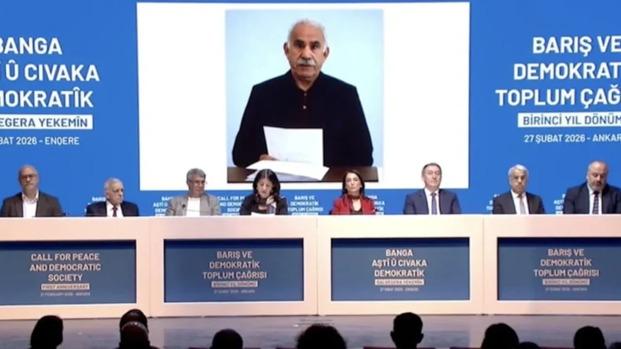 İmralı'nın mesajı şöyle: “27 Şubat 2025 çağrımız, demokratik siyasetin hayata geçtiği yerde silahın anlamsızlaşacağının beyanı ve tercihin açıkça siyasetten yana yapıldığının ilanıdır, bir ilke bütünlüğüdür. Negatif isyan dönemini temelde tek taraflı bir irade ve pratikle aşmayı başardık. Geride bıraktığımız süreç, şiddet ve ayrışma siyasetinden demokratik siyaset ve entegrasyona geçişi sağlayacak müzakere yeteneğini ve gücümüzü kanıtlamıştır. Çağrılarımız, konferans ve kongreler bu amaca yönelikti. Örgütün fesih ve silahlı mücadele stratejisine son verme kararları, sadece resmen ve fiilen değil zihnen de şiddetten arınmayı ve siyaset tercihini ortaya koymuştur. Bu aynı zamanda cumhuriyetle zihnen barışmanın da ilanıydı. Geçtiğimiz bir yıl içinde Sayın Erdoğan’ın iradesi, Sayın Bahçeli’nin çağrısı, Sayın Özel’in katkısı ve sürece olumlu katkı yapan diğer tüm siyasi, sosyal, sivil birey ve kurumların çabalarını kıymetli buluyorum. Ve özellikle Sırrı Süreyya arkadaşımızı bir kez daha büyük bir saygıyla ve özlemle anıyorum.