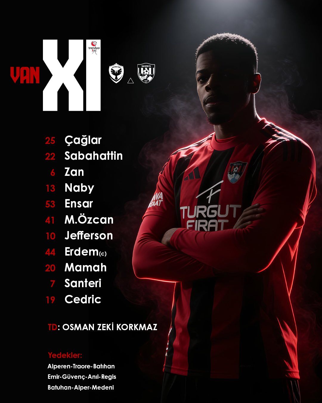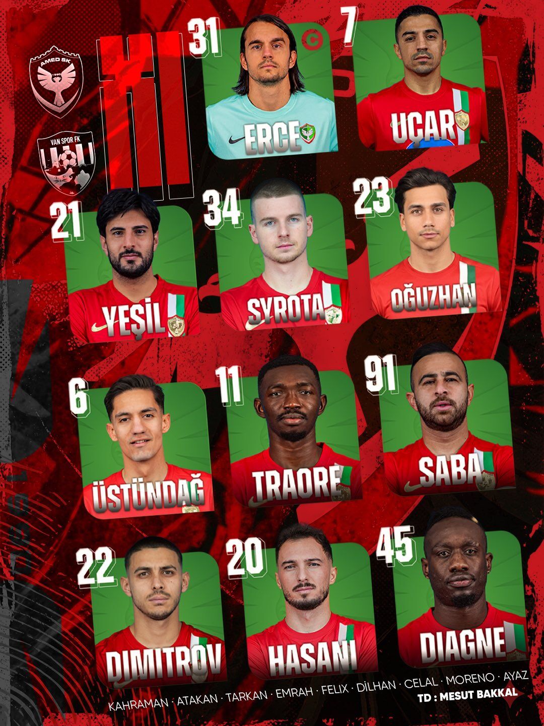 Vanspor'un Amedspor maçı ilk 11'i;