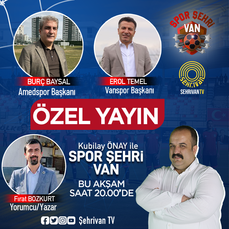 Amedspor Başkanı Burç Baysal ve Vanspor FK Başkanı Erol Temel, bu akşam saat 20.00’de, Kubilay Önay moderatörlüğünde Şehrivan TV ekranlarında izleyicilerle buluşuyor. Canlı olarak yayınlanacak programda, spor yorumcusu ve yazar Fırat Bozkurt tarafından yöneltilecek soruları başkanlar yanıtlayacak. Yayında her iki kulübün sezon planlaması, hedefleri, transfer politikaları ve güncel gelişmeler üzerine önemli açıklamalarda bulunulacak.