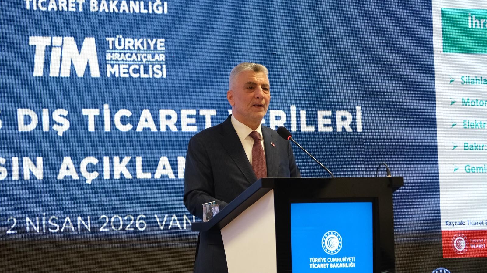 2026 Mart ayı dış ticaret verileri Ticaret Bakanı Ömer Bolat, Türkiye İhracatçılar Meclisi (TİM) Başkanı Mustafa Gültepe, bakanlık yetkilileri, ilgili kurum temsilcileri ve il protokolünün katılımıyla Van Ticaret ve Sanayi Odası'nda düzenlenen toplantıda açıklandı. Bakan Bolat konuşmasına ev sahipliğinden dolayı Van Ticaret ve Sanayi Odası ile Van TSO Yönetim Kurulu Başkanı Necdet Takva'ya teşekkür etti.