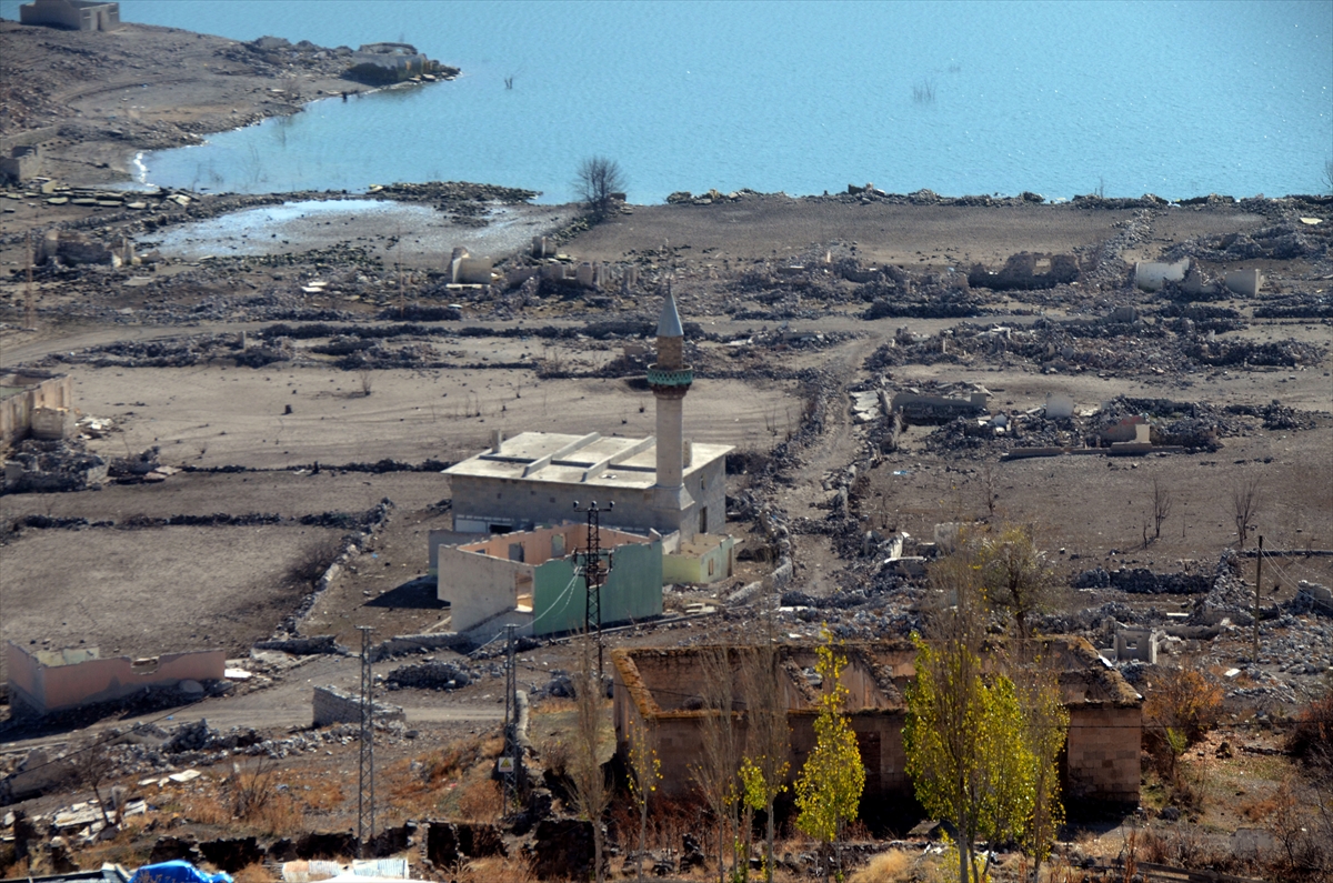 Baraj kapaklarının kısmen açılmasıyla su seviyesi düşünce köydeki evler, cami, kilise ve bazı tarihi binalar gün yüzüne çıktı.
