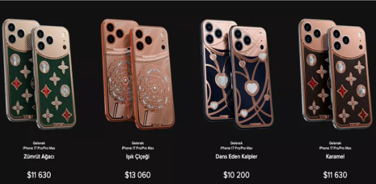 ŞEHRİVAN HABER - Lüks teknoloji tasarımlarıyla tanınan Caviar, Apple’ın son amiral gemisi iPhone 17 Pro modellerine özel bir dokunuş yaparak telefonları adeta sanat eserine dönüştürdü. Dört farklı seçenekten oluşan bu koleksiyonda en üst modelin fiyatı ise 555 bin TL’den satışa sunulurken elmas, altın ve özel işlenmiş derilerle süslenen telefonlar “Secret Love” (Gizli Aşk) adı altında satışa çıkarıldı.