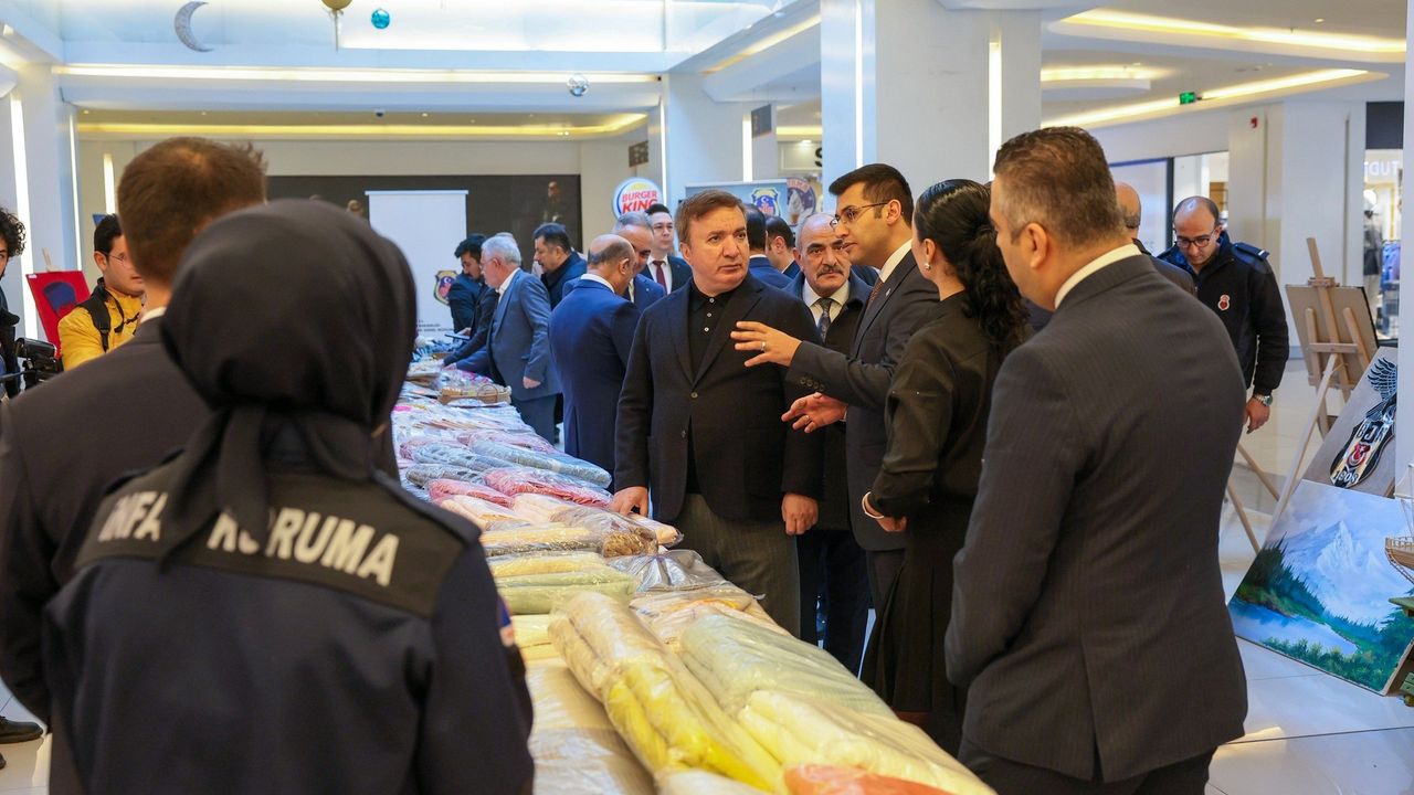 AVM’de ziyarete açılan ve 22-23 Kasım 2025 tarihlerinde vatandaşların beğenisine sunulacak sergide, hükümlü ve tutukluların çeşitli atölyelerde ürettikleri el sanatları, tekstil ürünleri ve dekoratif çalışmalar yer aldı.