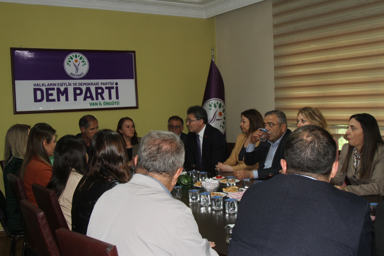 Saat 16.00'da gerçekleşen ziyarette, CHP heyeti, DEM Parti Van İl Başkanı ve parti üyeleriyle bir araya geldi. Görüşmede, Van'ın ekonomik, sosyal ve siyasal durumu ele alındı. Her iki partinin yetkilileri, bölgedeki sorunlar ve çözüm önerileri üzerine fikir alışverişinde bulundu.