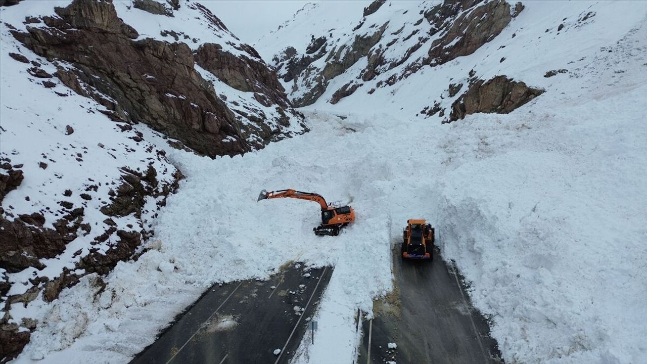 Van-Hakkari kara yolunun Gedikbaşı Mahallesi yakınlarındaki Kırmızıtaş mevkisine düşen çığın temizlenmesine yönelik çalışmalar devam ediyor.