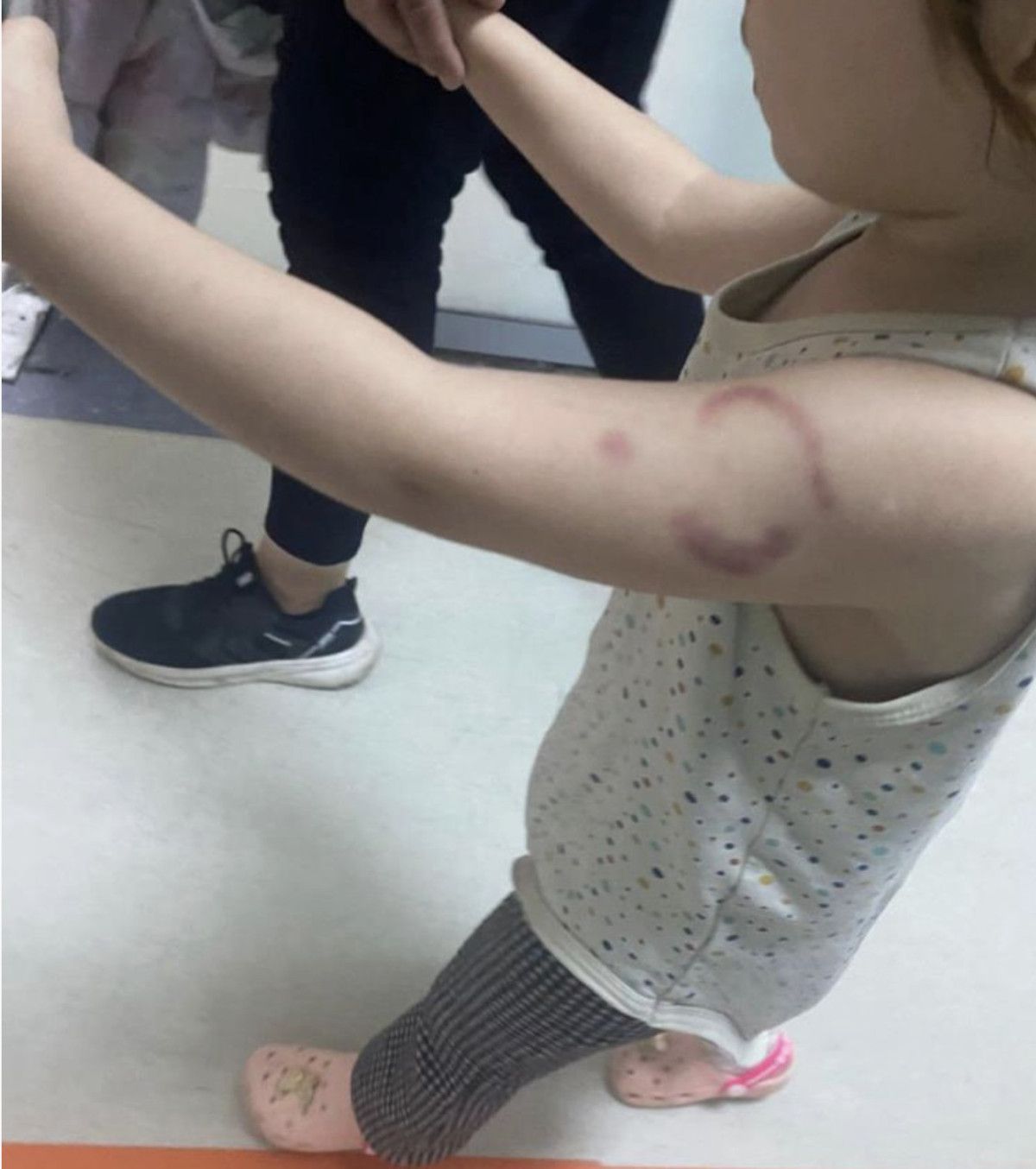 Kızıyla konuşan baba, kızının kolunu göstermesi üzerine buradaki morluk ve ısırılma izini görmüştü.