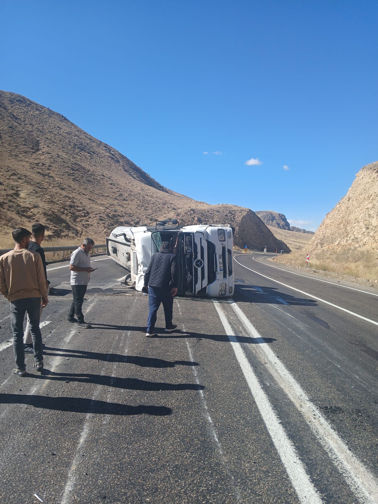 Sürücüsünün kimliği öğrenilemeyen 73 ST 185 plakalı asfalt ham maddesi yüklü tır, Erzurum-Ağrı kara yolu Dellalhan mevkisinde kontrolden çıkarak yola devrildi. İhbar üzerine kaza yerine sağlık ve jandarma ekibi sevk edildi. Kazayı gören diğer sürücüler, tır içinde sıkışan şoförü, aracın camını kırarak bulunduğu yerden çıkardı. O anlar cep telefonu kamerasıyla kaydedildi.