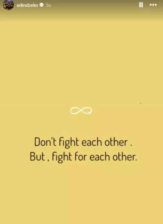 Edin Dzeko paylaşımında "Don't fight each other. But fight for each other" (Birbirinizle kavga etmeyin. Birbiriniz için mücadele edin) ifadelerini kullandı.