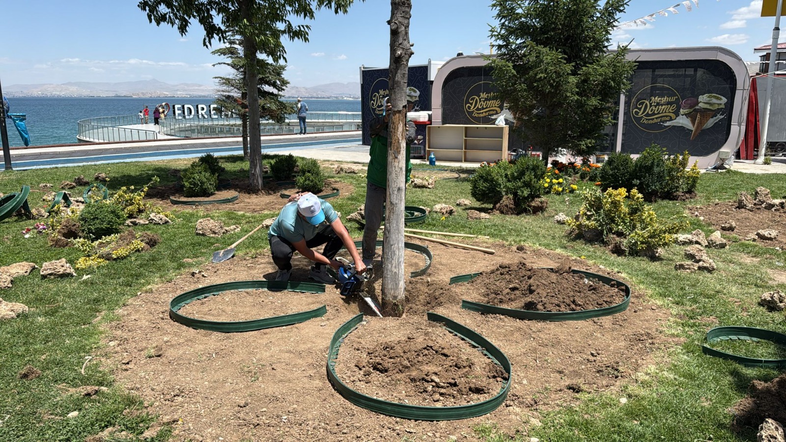 Van'ın Edremit Belediyesi'ne bağlı Park ve Bahçeler Müdürlüğünün özverili çalışmalarıyla meydanın çehresi günden güne değişiyor. Beton zeminlerden oturma alanlarına, seramik kaplamalardan kent mobilyalarına kadar her ayrıntı baştan elden geçiriliyor. Banklar ve dinlenme alanları modern tasarımlarla yenilenirken, hasarlı cam yüzeyler değiştirilerek güvenli bir ortam sağlanıyor. Rengârenk bir görünüme kavuşan meydan, dekoratif dubalar sayesinde hem estetik bir kimliğe bürünüyor hem de güvenlik açısından güçlendiriliyor.