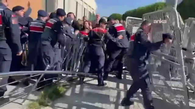Duruşma öncesi izleyici olarak salona girmek isteyen kabalık ile jandarma görevlileri arasında gerginlik yaşandı. Alanda kurulan bariyerleri yıkarak duruşma salonunu önüne gelen kalabalık, içeri girmek istedi. Duruşma salonuna girmek isteyen kalabalık, bariyerleri yıktı. Jandarma ile kabalalık arasında arbede yaşandı.