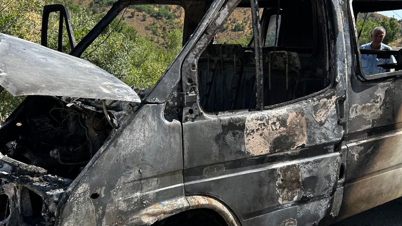 Olay, Maden ilçesi Cumhuriyetçi köy Behra mezrasında meydana geldi. Edinilen bilgiye göre minibüs, seyir halindeyken motor kısmında alev aldı. Sürücü aracı güvenli noktaya çekere aşağı indi. Minibüs kısa süre içerisinde alevlere teslim oldu. Haber verilmesi üzerine olay yerine itfaiye ekipleri sevk edildi. Ekiplerin müdahalesi minibüs söndürüldü.