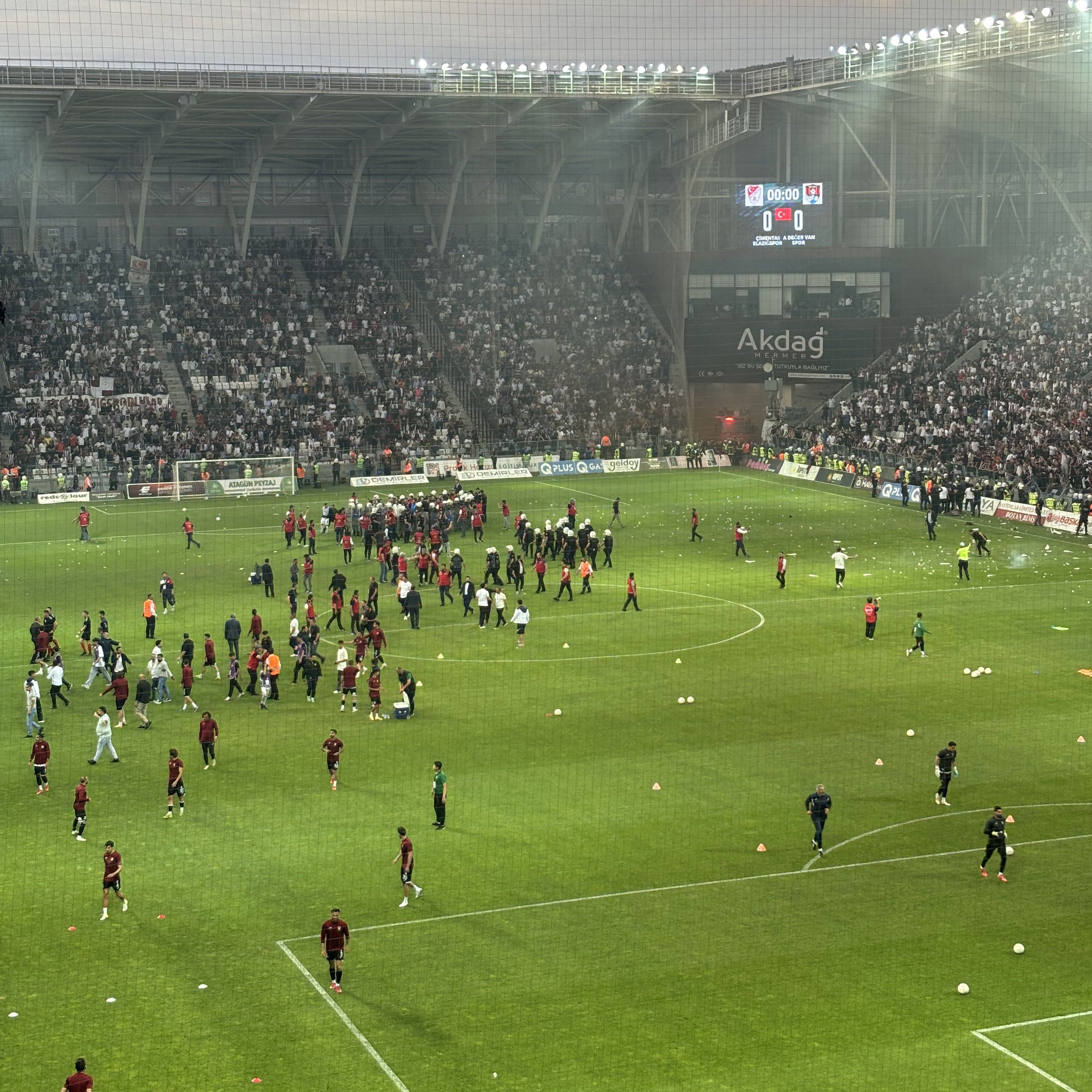Günler öncesinden Elazığ cephesinden Vanspor’a yönelik tehditler maça da yansırken maçın hem maç öncesi hem de maç esnasında Vanspor futbolcularına ve yöneticileri saldırı yapılamıştı. Olaylı başlayan maç, skandal olaylarla yarıda kalırken 56.dakikasında Elazığ tribünlerinden sahaya atılan yabancı cisim yardımcı hakem Kadir Temel’in başına isabet etmesi nedeniyle maç tatil edildi. Maçın tatil edilmesine neden olayda yardımcı hakeme atılan cismin ise ne olduğu belli oldu.