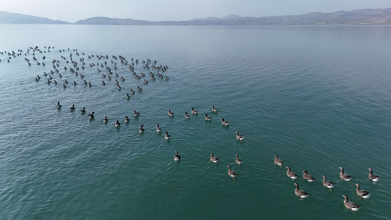 Son günlerde, göç yolculuğundaki küçük sakarcalar (Mergellus albellus) türü kazlar, bu sıralar Van’da bulunan Erçek Gölü'nde misafir oluyor. Göç yolculuklarını sürdüren küçük sakarca kazları, Van'ın doğusunda yer alan 114 kilometrekare yüzey alanı ve bin 808 rakımı ile Erçek Gölü'nde mola verdi. Gölge ve çevresinde konaklayan yüzlerce küçük sakarca kazı dron ile net bir şekilde kayıt altına alındı. Zarif görüntüleri ile Erçek Gölü’ne renk katan küçük sakarca kazları görsel şölen oluşturdu.