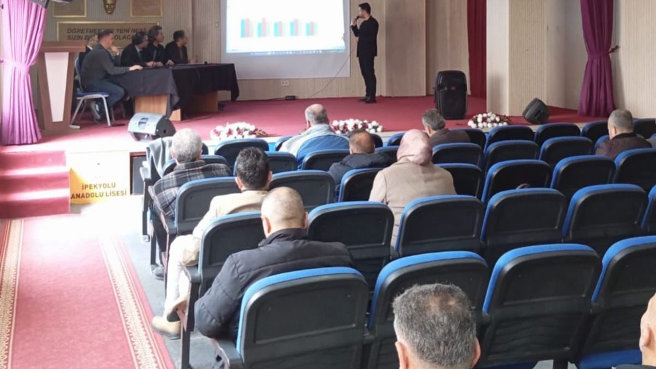 Şube müdürleri ve ilçedeki tüm lise müdürlerinin katılımıyla yapılan toplantıda, Türkiye geneli deneme sınavlarının sonuçları detaylı şekilde analiz edildi. Okulların başarı durumları; Türkiye, il ve ilçe ortalamalarıyla karşılaştırılarak kapsamlı değerlendirmelere tabi tutuldu. Ayrıca branş bazlı analizlerle her okulun güçlü ve geliştirilmesi gereken yönleri ele alındı.