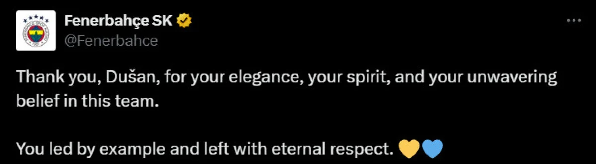 Sarı-lacivertli kulüp, Sırp yıldız ile yollarını ayırdı. Yıldız oyuncuya Samandıra'da plaket verildi ve teşekkür edildi.