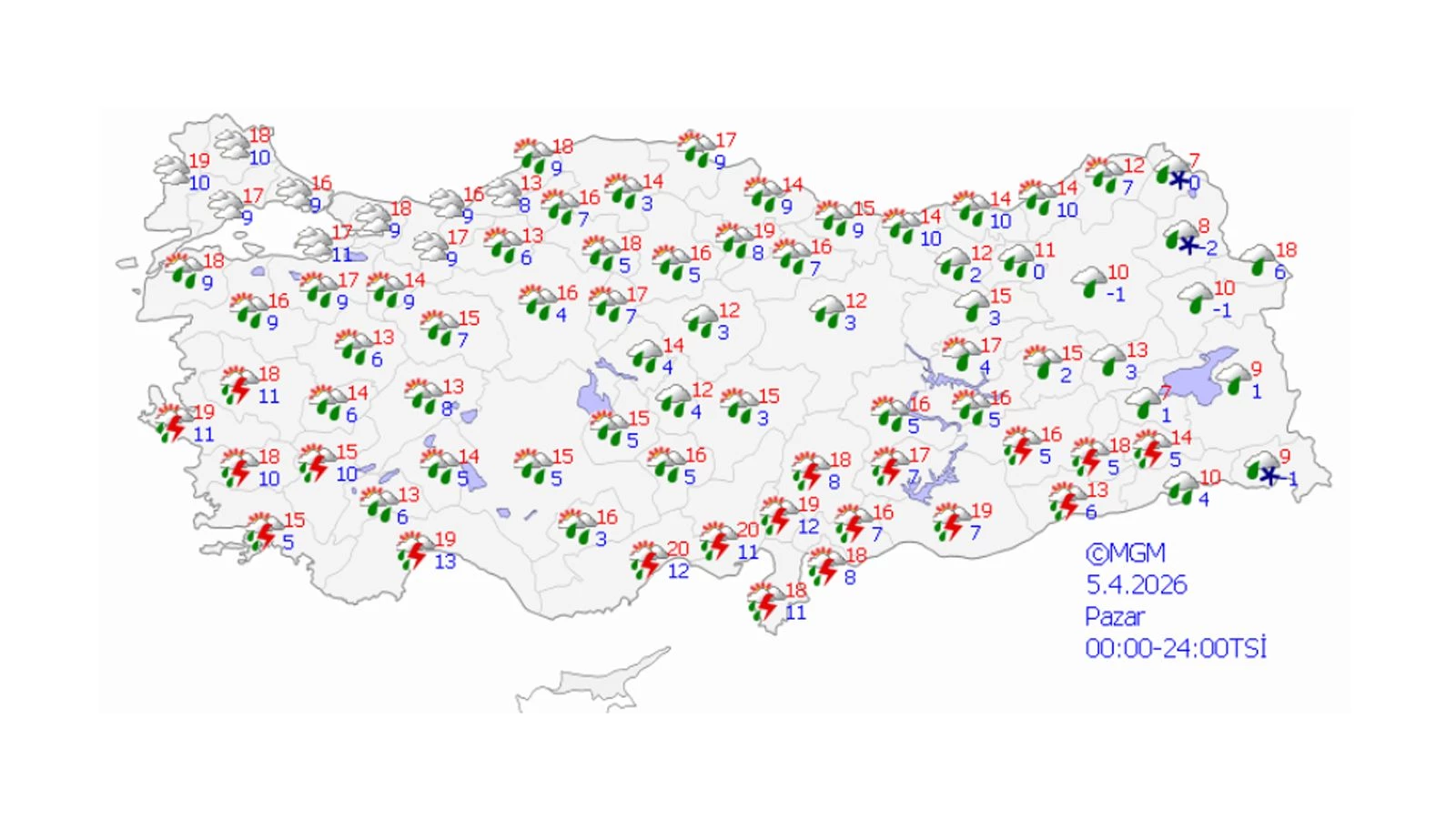 Balkanlar üzerinden gelen yağışlı hava tüm Türkiye’yi etkisi altına aldı. Meteoroloji Genel Müdürlüğü tarafından yapılan son hava durumu tahminlerine göre 5 Nisan Pazar günü tam 72 ilde sağanak yağış ve gök gürültülü yağmurun beklendiğini açıkladı. İşte yağmurun etkili olacağı o 72 şehrimiz...