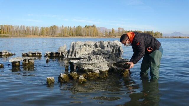 Van Gölü suyu çekilmesiyle tarihi kalıntılar gün yüzüne çıktı