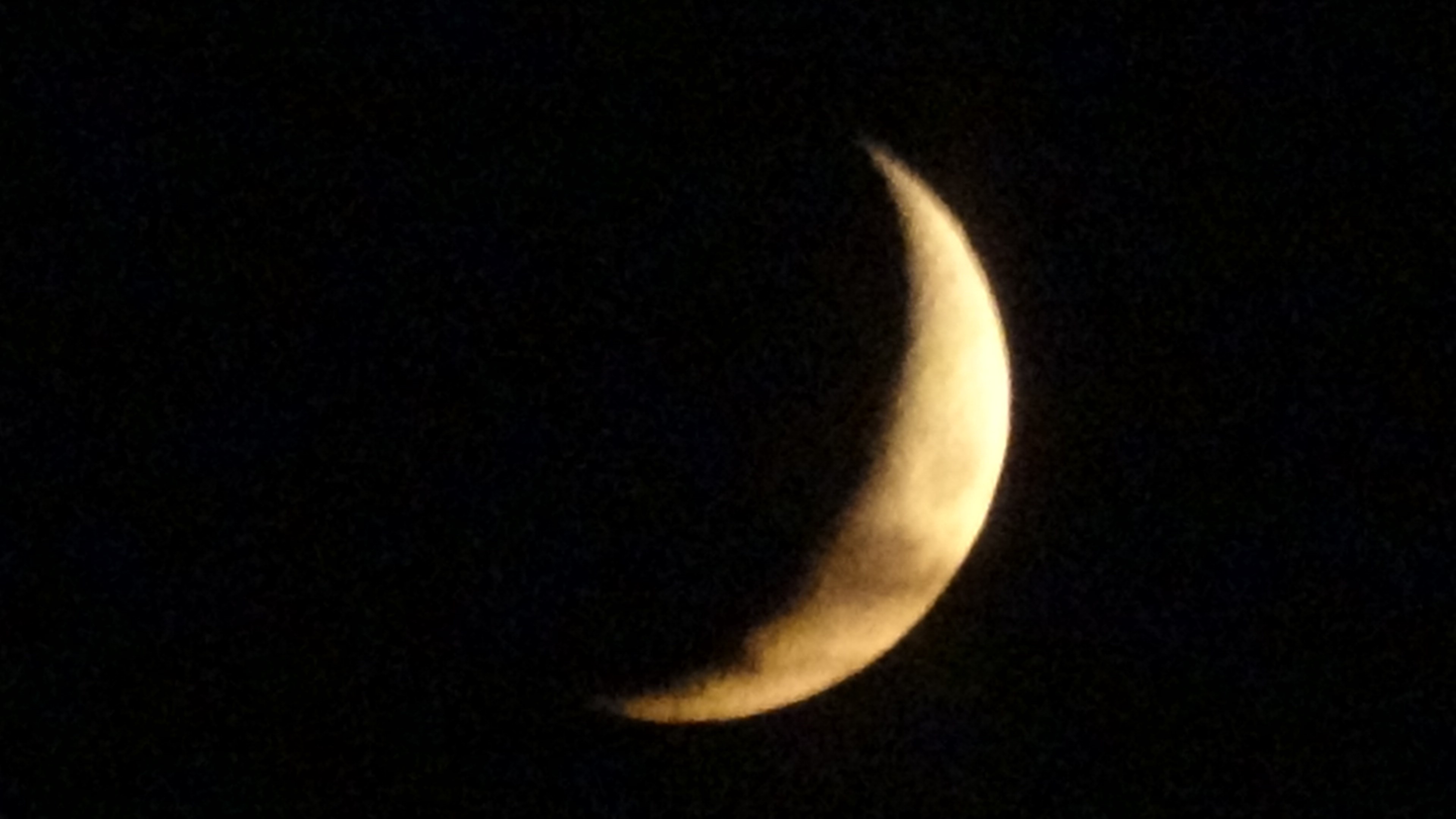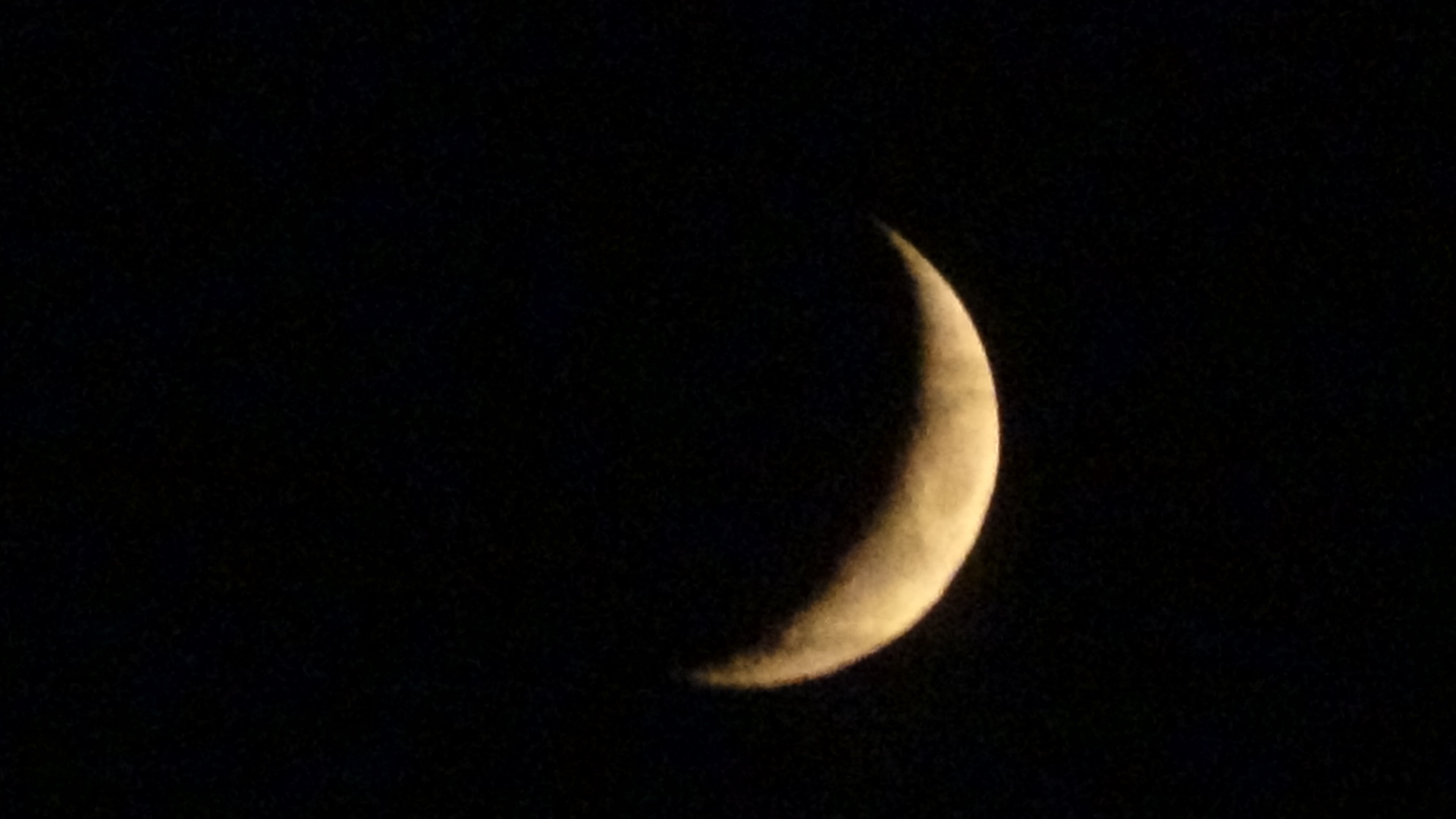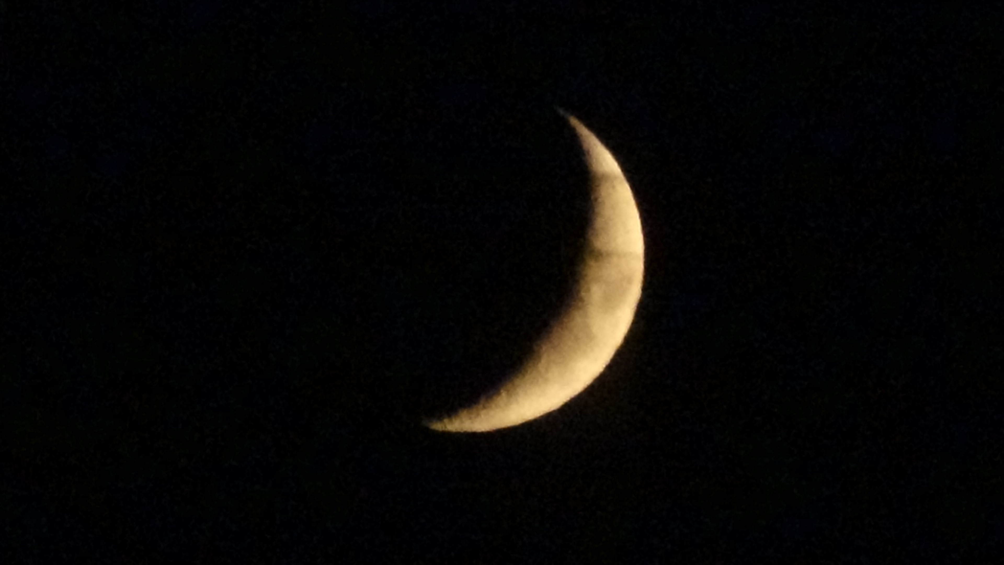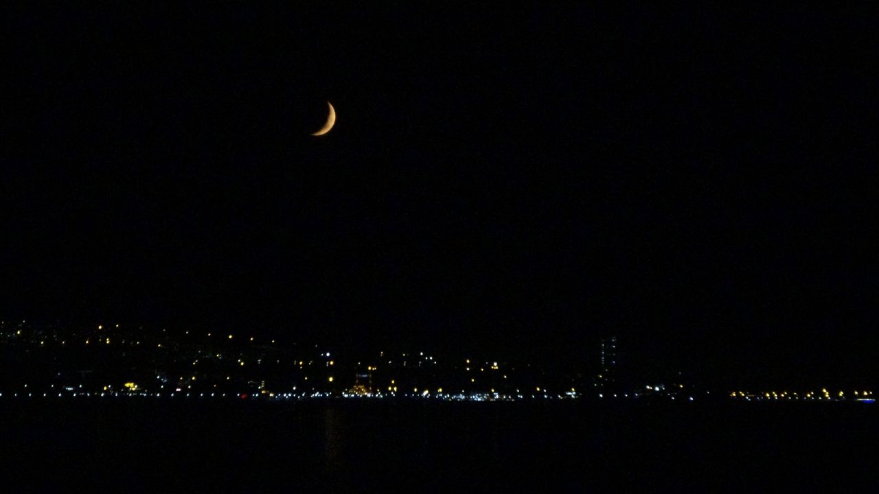 Hilal ay, gökyüzünde süzülen bulutların arasına gizlenip çıkarak adeta saklambaç oynadı.