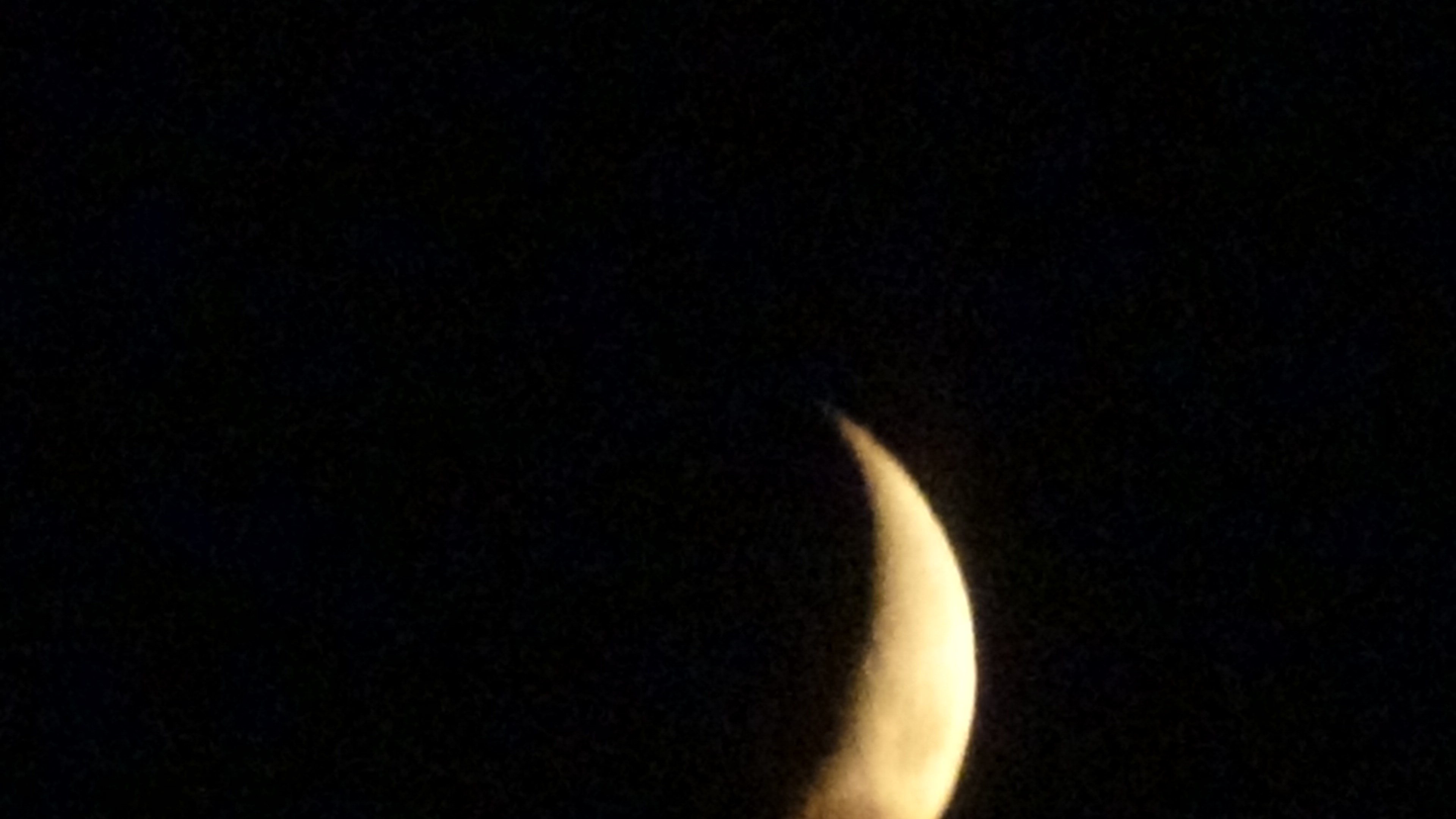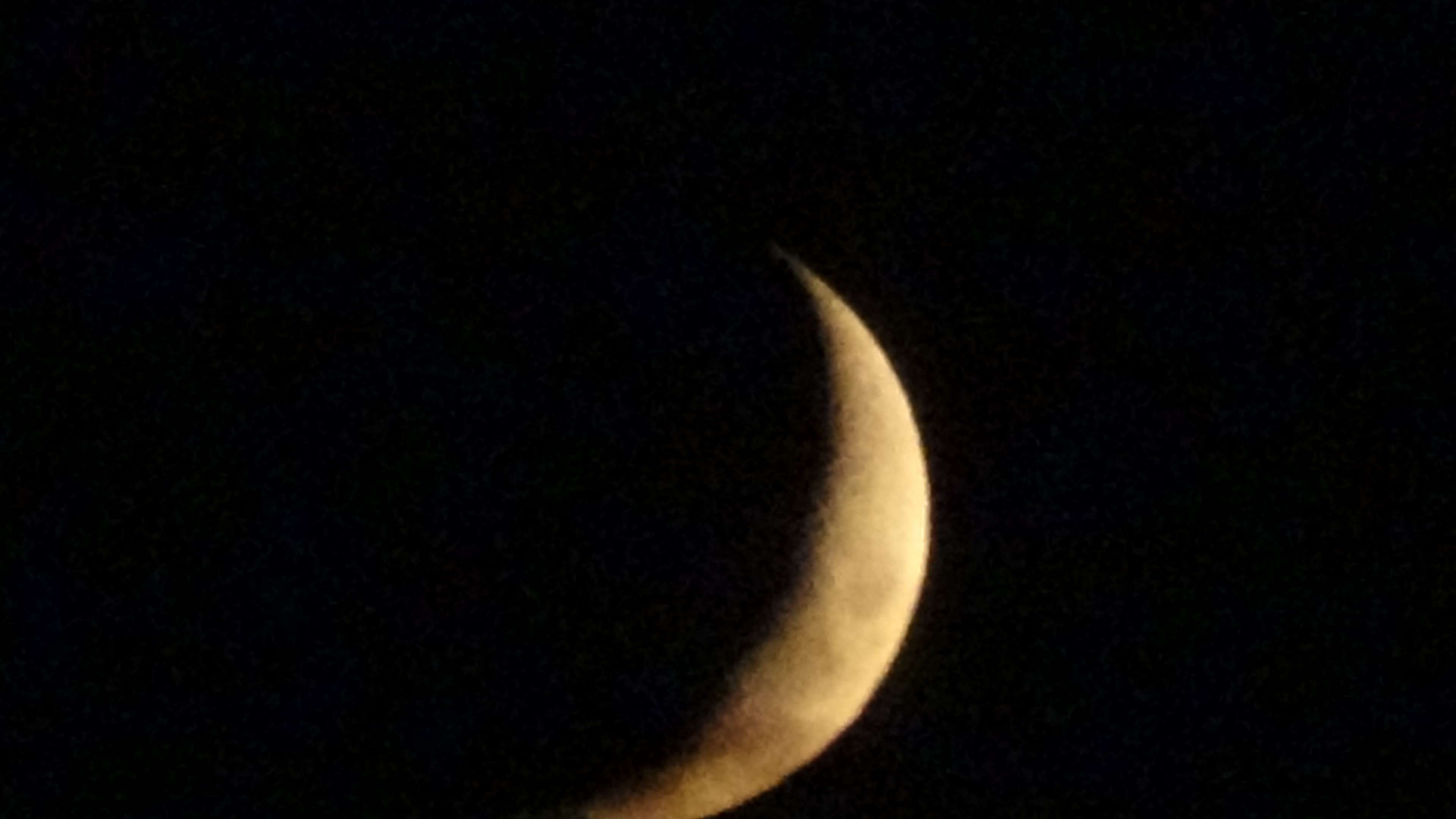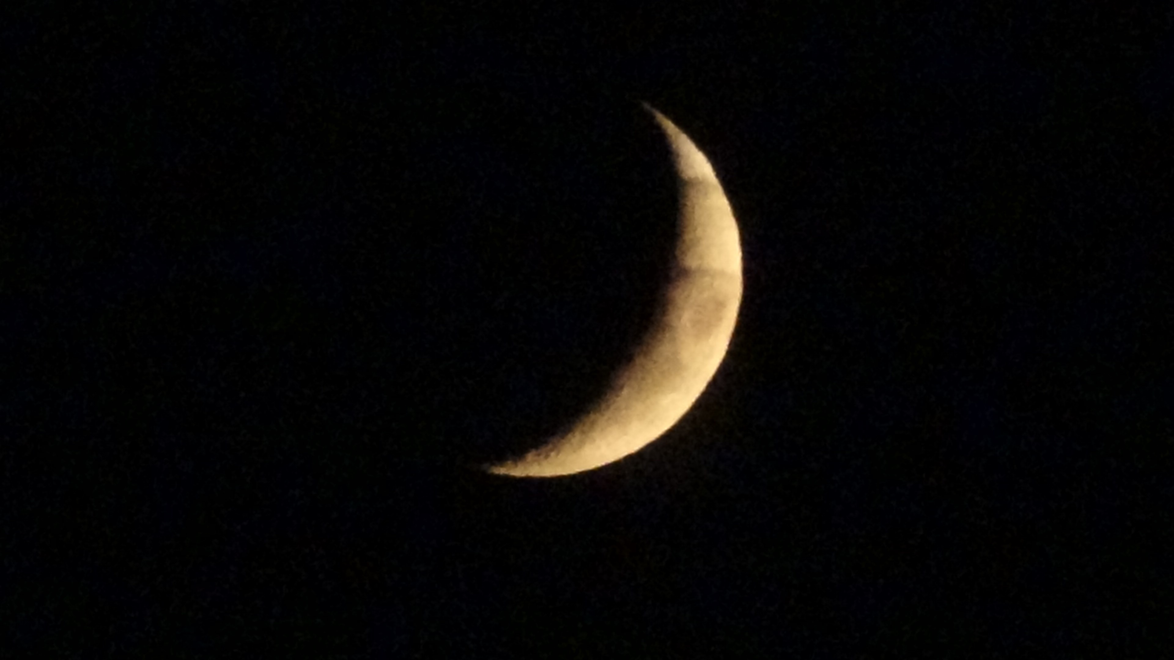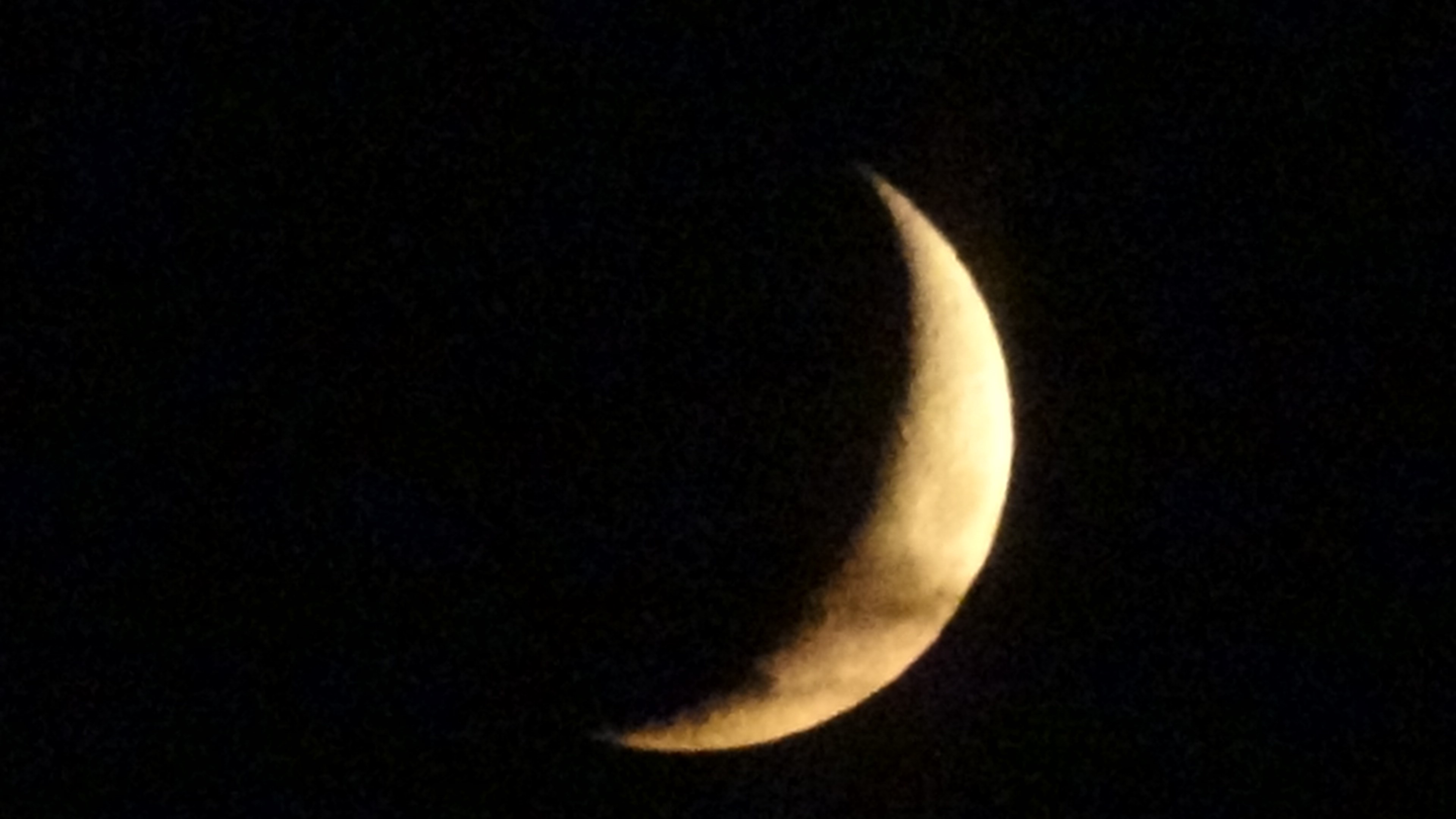Hilal ay, gökyüzünde süzülen bulutların arasına gizlenip çıkarak adeta saklambaç oynadı.