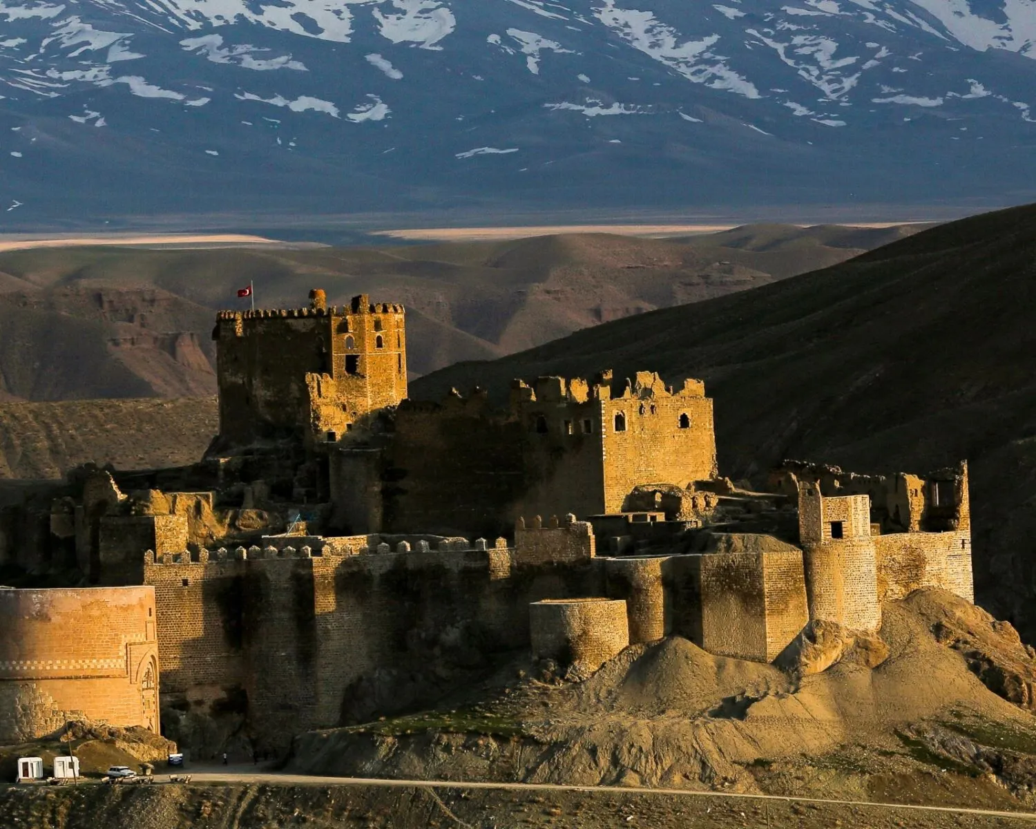 Van Gölü kıyısında, yaklaşık 250 metre yükseklikte konumlanan kale, Urartu Krallığı’nın son büyük kalelerinden biri olarak biliniyor