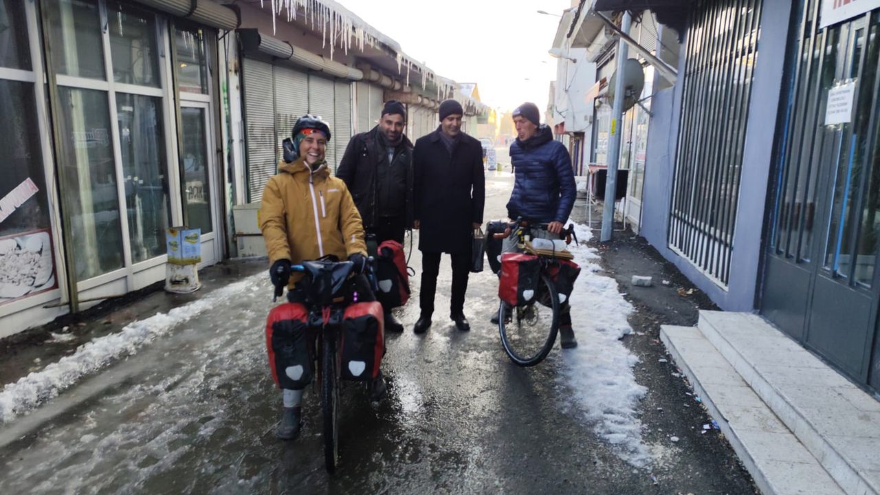 Quentin ve Zo, bisikletleriyle dünyayı keşfetme tutkularını gerçekleştirmek için çıktıkları yolda, Bulgaristan’ı geçerek Türkiye’ye ulaştılar. Edirne’den başlayıp Van’a kadar uzanan yaklaşık 3 bin kilometrelik bir parkuru tamamlayan çift, Türkiye’nin en soğuk ilçelerinden biri olan Çaldıran ilçesinde konakladıktan sonra Gürcistan’a geçmeyi planlıyorlar. "Pamir Otoyolu"nu aşarak Kazakistan’a ulaşarak yolculuklarını tamamlamayı hedefleyen Fransız çift, yolculuklarının hem fiziksel hem de mental olarak zorlayıcı olduğunu ancak her gün yeni bir macera yaşamanın ve farklı kültürlerle tanışmanın büyük bir keyif olduğunu söylüyor. Kazakistan’a ulaştıklarında bu büyük yolculuğun sonuna gelmiş olacaklarını dile getiren çift, dünyayı keşfetme tutkularının gelecekte yeni rotalara yelken açmalarını sağlayacağını belirtti.