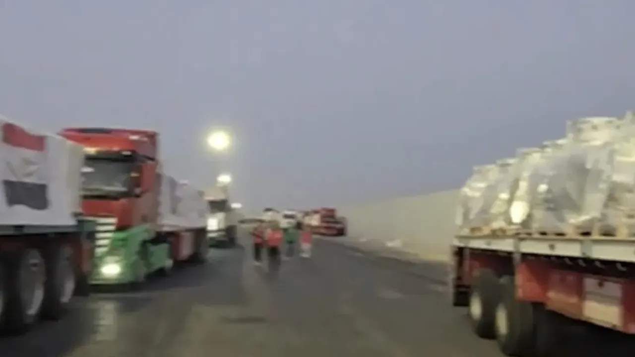 Mısır’dan yola çıkan tırlar, Refah Sınır Kapısı’nın Mısır tarafından geçerek İsrail tarafındaki Kerem Ebu Salim Sınır Kapısı'nda güvenlik kontrollerinin sağlanması için bekletiliyor.