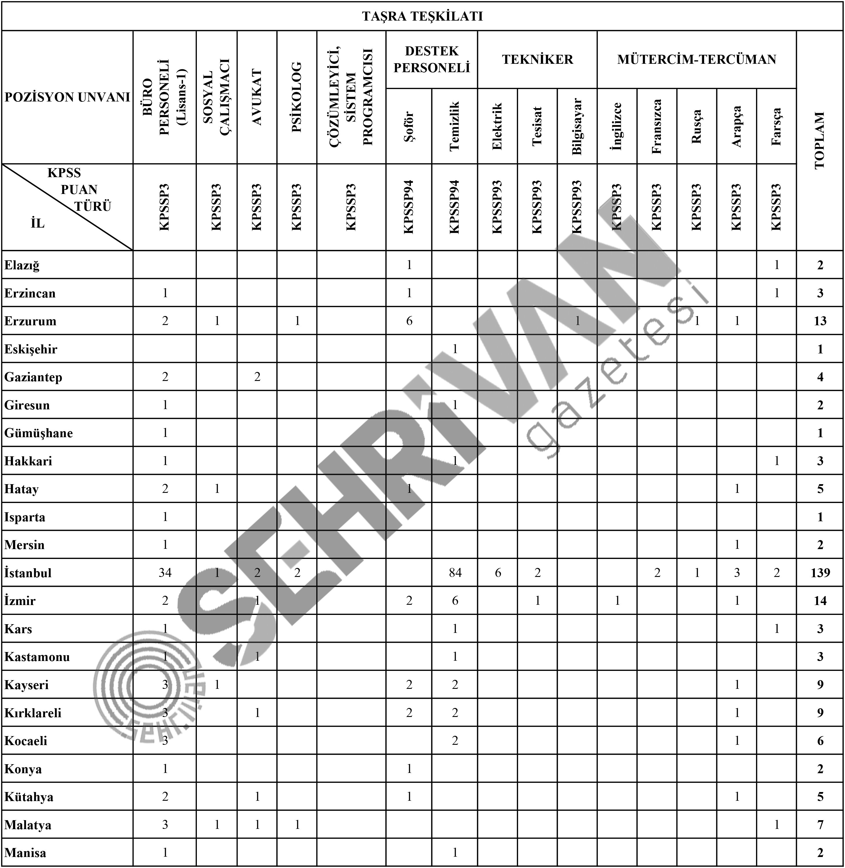 Sözleşmeli personel alımıyla ilgili diğer detaylara Resmi Gazete'deki ilandan ulaşılabiliyor.
