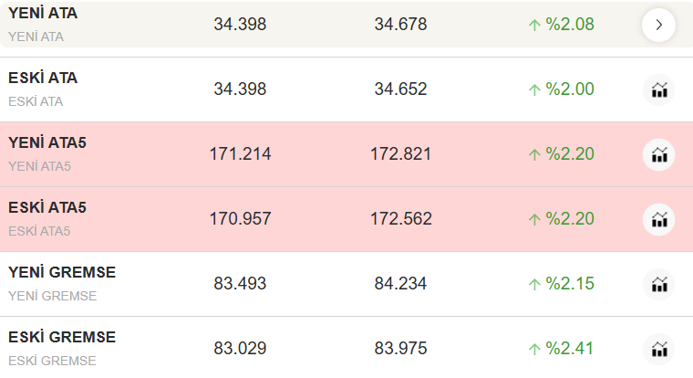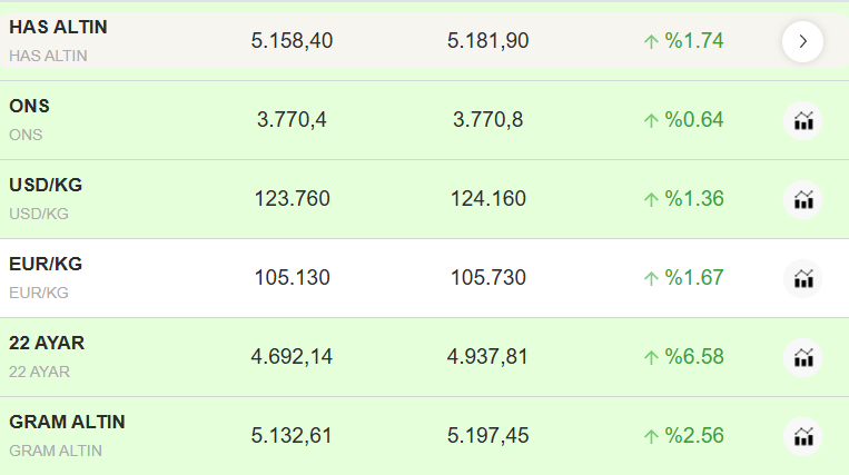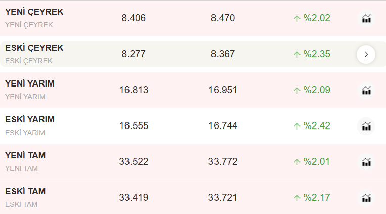 İşte anlık güncel altın fiyatları;