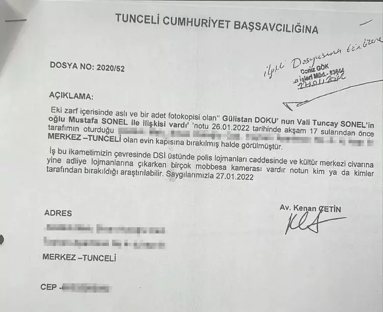Tunceli Cumhuriyet Başsavcılığı tarafından yürütülen Gülistan Doku soruşturmasında en dikkat çekici kırılma, yıllar sonra peş peşe gelen iki gelişmeyle yaşandı. İlki, 2022 yılında ailenin avukatının ofisi önüne bırakılan ve daktilo ile yazıldığı değerlendirilen isimsiz nottu. O notta, Gülistan Doku’nun dönemin Tunceli Valisi Tuncay Sonel’in oğlu Mustafa Türkay Sonel ile ilişkisinin bulunduğu kayıtlara geçti. İkinci büyük kırılma ise 2025 yılında “Şubat” kod adıyla ifade veren gizli tanığın beyanları oldu. Bu iki gelişme, kayıp ihbarıyla başlayan soruşturmanın yönünü kökten değiştirdi.