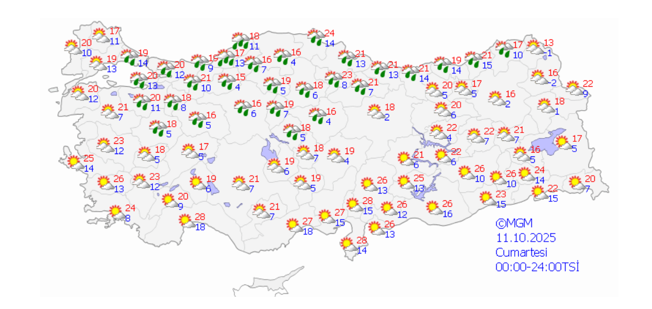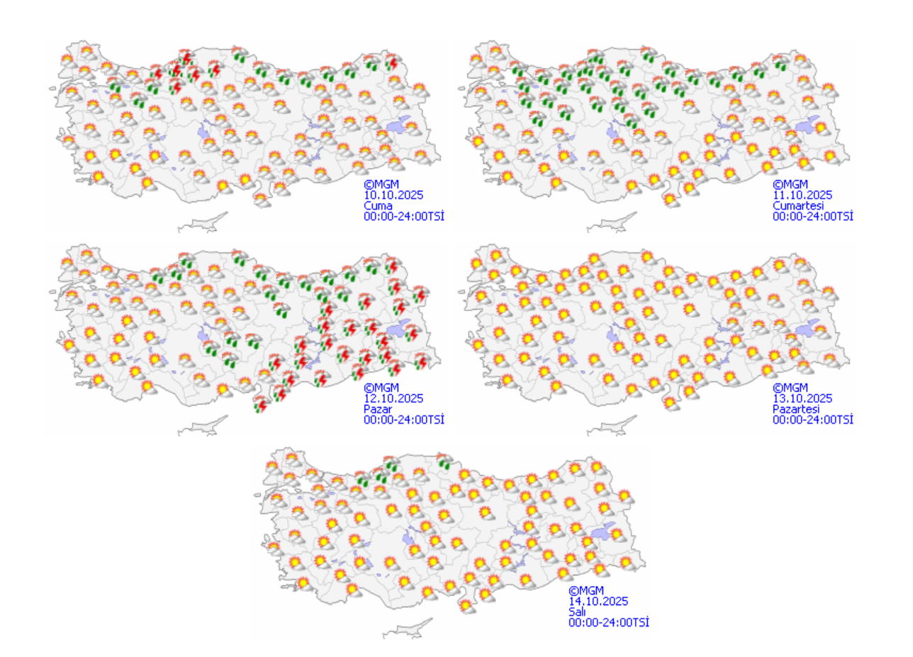 Meteoroloji Genel Müdürlüğü Hava Tahmin Uzmanı Abdullah Macit, hafta sonu beklenen hava durumuna ilişkin değerlendirmede bulundu. Hava sıcaklıklarının mevsim normallerinin altına düştüğünü ve hafta sonu dahil önümüzdeki 4-5 gün boyunca mevsim normallerinin 3 ila 6 derece altında seyretmeye devam edeceğini belirten Macit, bugün ve yarın günü Batı Karadeniz'in kıyı kesimlerinde Zonguldak, Bartın, Düzce'nin kuzey ilçelerinde ve İstanbul'un kuzeyinde kuvvetli yağış beklendiğini belirtti.