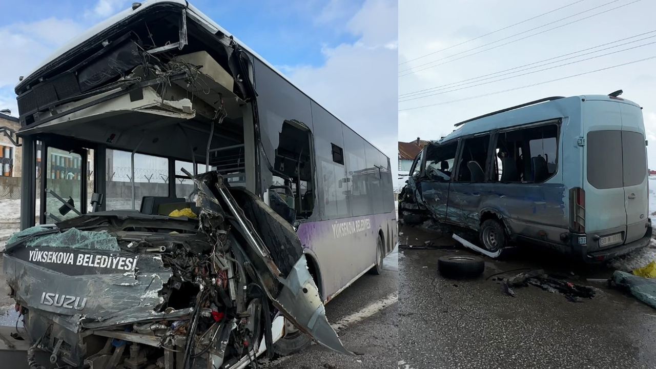 HAKKARİ’DE OTOBÜS İLE MİNİBÜS KAFA KAFAYA ÇARPIŞTI
