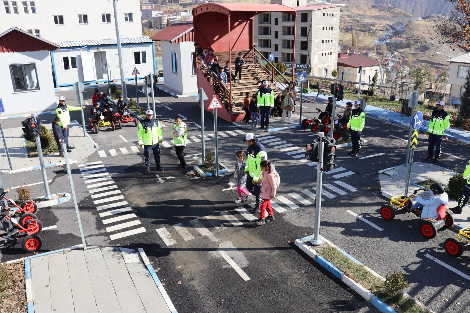 Bu kapsamda özel olarak hazırlanan trafik parkurunda bir araya gelen öğrenciler, hem eğlenerek trafik kurallarını öğrendi hem de öğrendiklerini deneyimleme fırsatı buldu.