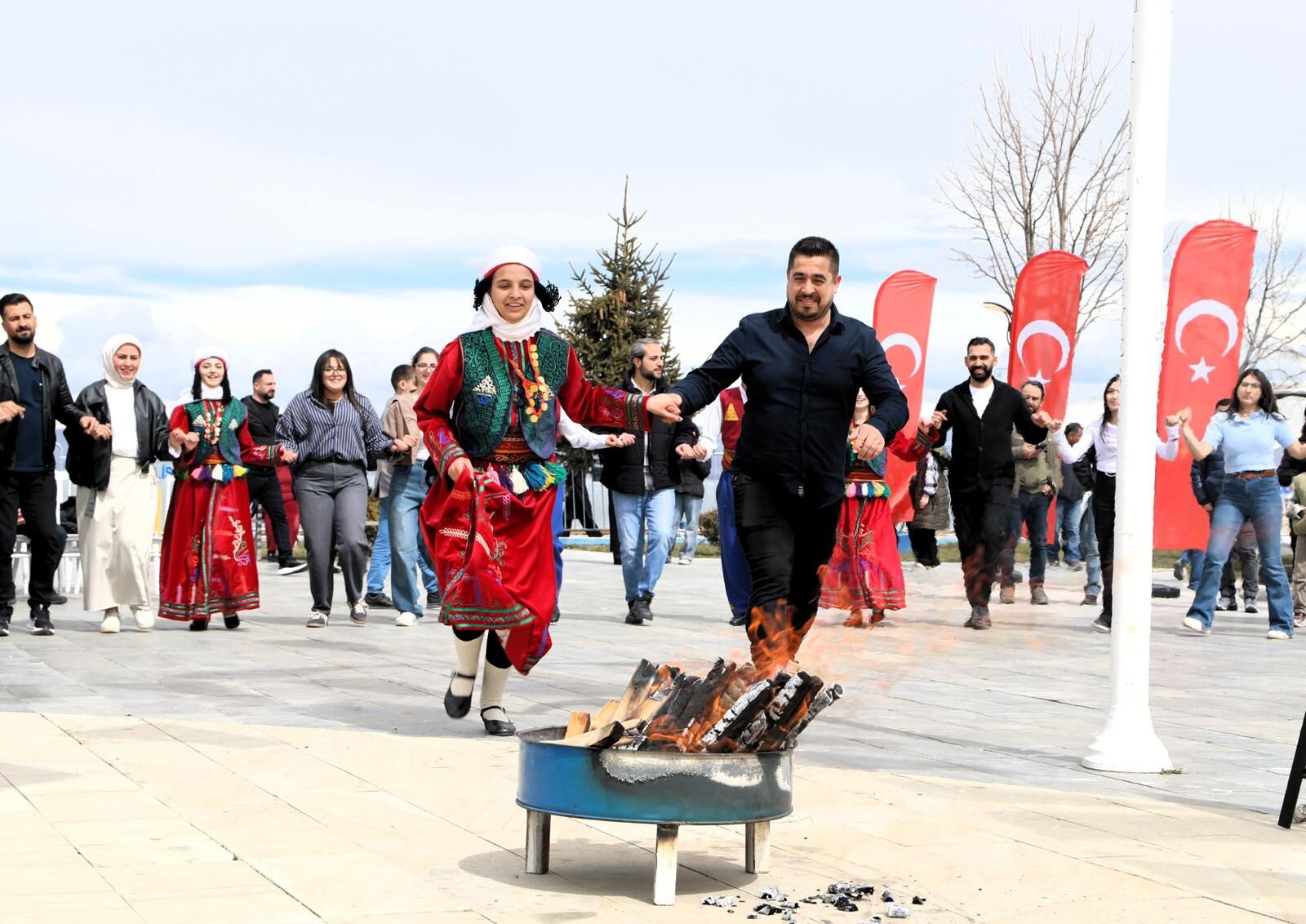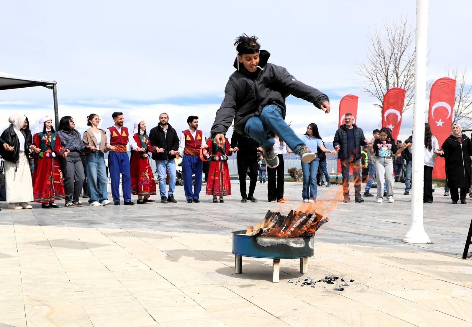Program, saygı duruşu ve İstiklal Marşı’nın okunmasıyla başladı. Daha sonra bir selamlama konuşması yapan Vali Ozan Balcı Nevruz’un binlerce yıllık bir kültürel miras olduğunu vurguladı. Vali Ozan Balcı “Nevruz, toplumların sevgi, barış ve kardeşlik duyguları içinde hayatı paylaşabilme iradesini simgeler. Bugün, bolluk ve bereketin müjdecisi olan bu sıcak günleri, geleceğimizin aydınlık ve huzurlu olması için bir başlangıç kabul etmeliyiz” diyerek tüm Vanlıların Nevruz Bayramı’nı kutladı. Konuşmanın ardından Vali Balcı, geleneksel olarak demir döverek Nevruz ateşini yaktı. Vatandaşlar da ateş üzerinden atlayarak dilek tuttu.