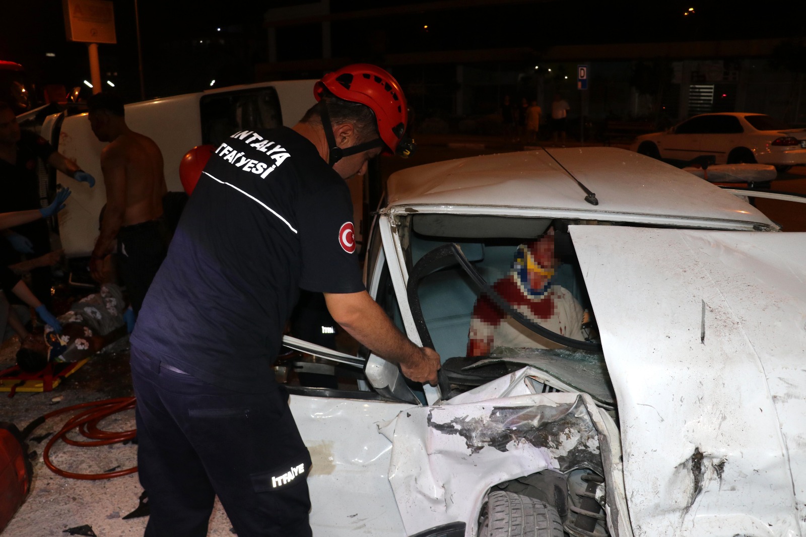 Kaza, dün saat 23.00 sıralarında Muratpaşa ilçesi Doğuyaka Mahallesi 1219 Sokak’ta meydana geldi. Şerit ihlali yapan, sürücüsü henüz öğrenilemeyen 26 FC 115 plakalı otomobil ile karşı yönden gelen Mehmet B. yönetimindeki 07 EZR 67 plakalı otomobil kafa kafaya çarpıştı. Kazada yan yatan 26 FC 115 plakalı otomobilin sürücüsü ile araçta bulunan Olcay Ü. ve Derviş Y. yaralandı. Diğer otomobilin sürücüsü Mehmet B. ise direksiyon başında sıkıştı.