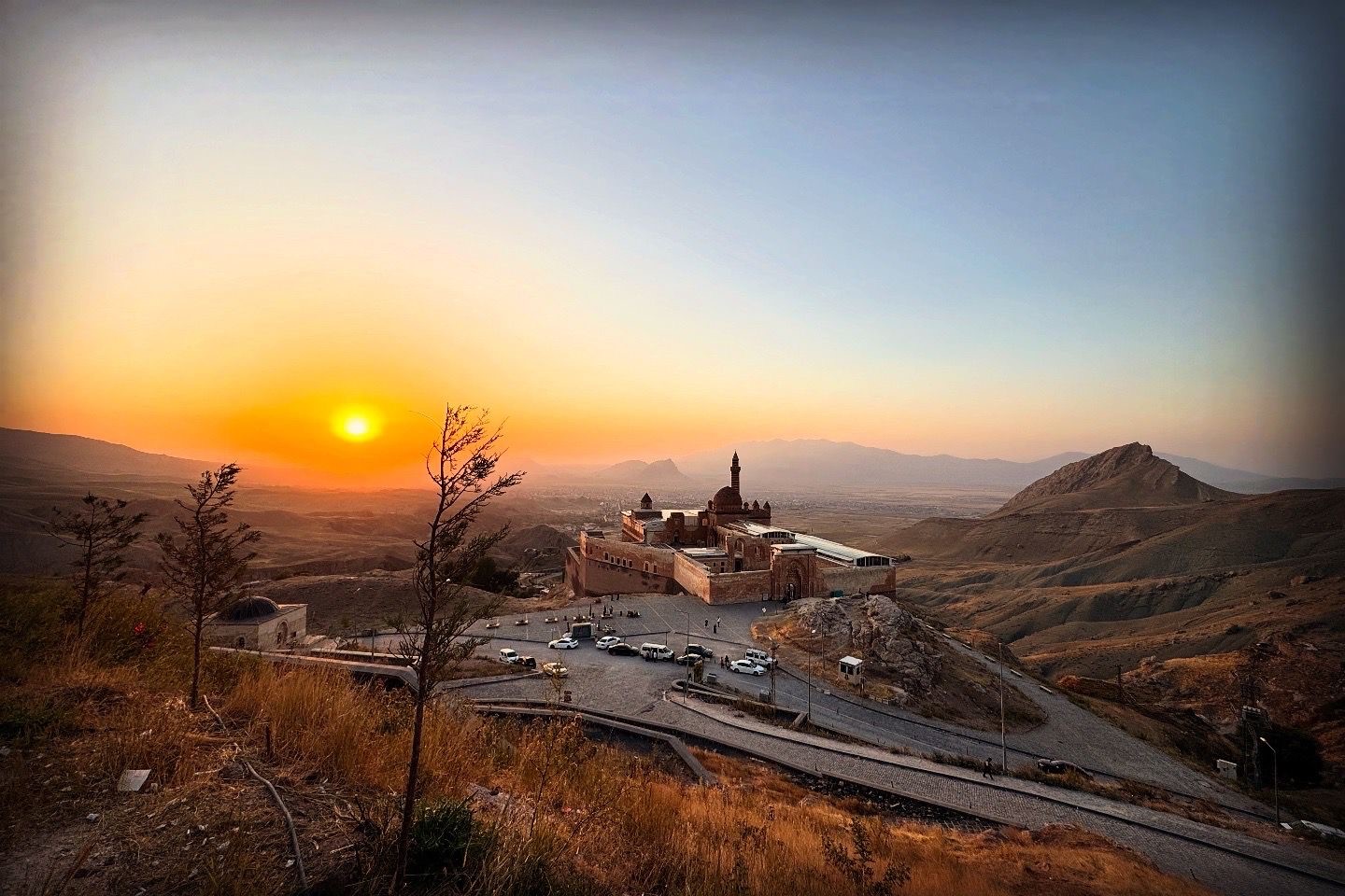 Osmanlı döneminin en önemli eserlerinden biri olan ve ihtişamıyla dikkat çeken İshak Paşa Sarayı, akşam saatlerinde ortaya çıkan eşsiz gün batımıyla kartpostallık görüntülere sahne oldu. Sarayın avlularını ve yüksek duvarlarını turuncu-kızıl renklere boyayan manzara karşısında vatandaşlar hayranlıklarını gizleyemedi.