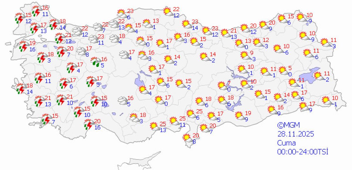 Hafta sonu ise yurdun büyük kesiminde yağış görülecek. Doğu ve İç Anadolu'nun yüksek bölgelerinde ise yağmur karla gelecek