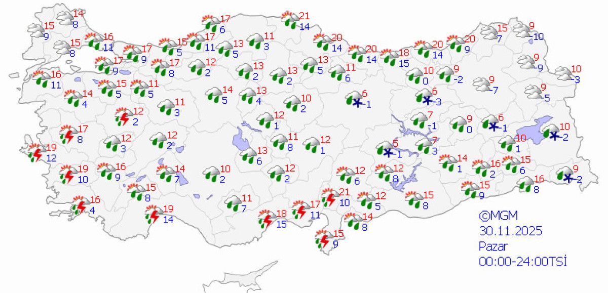 Özellikle kıyı bölgelerde sulu kar ihtimali de öne çıkıyor.
