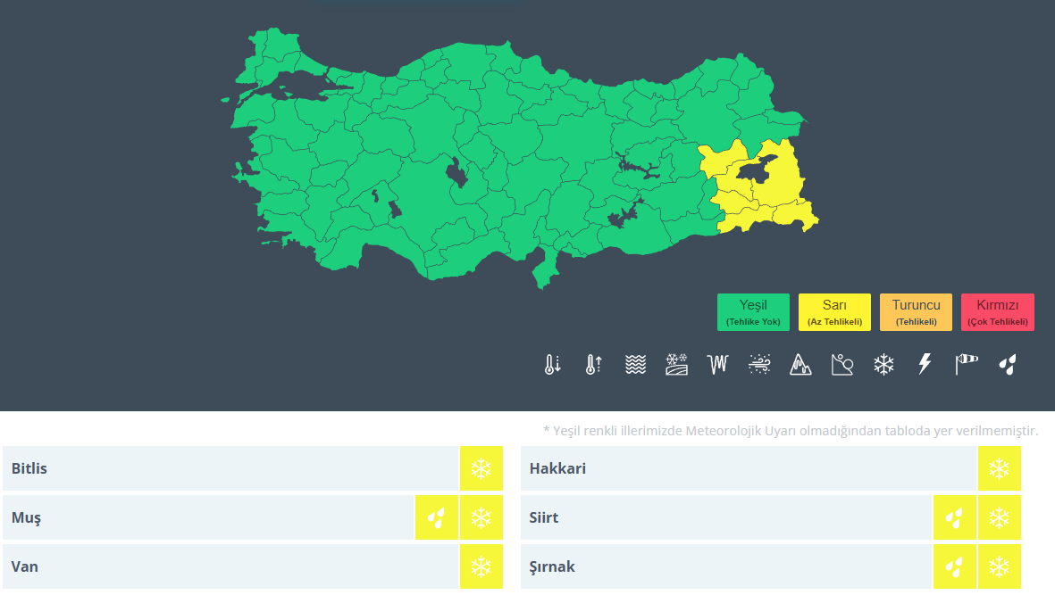 Meteoroloji Van dahil 6 il için sarı kod uyarısında bulunarak kuvvetli kar yağışı uyarısı yaptı.
