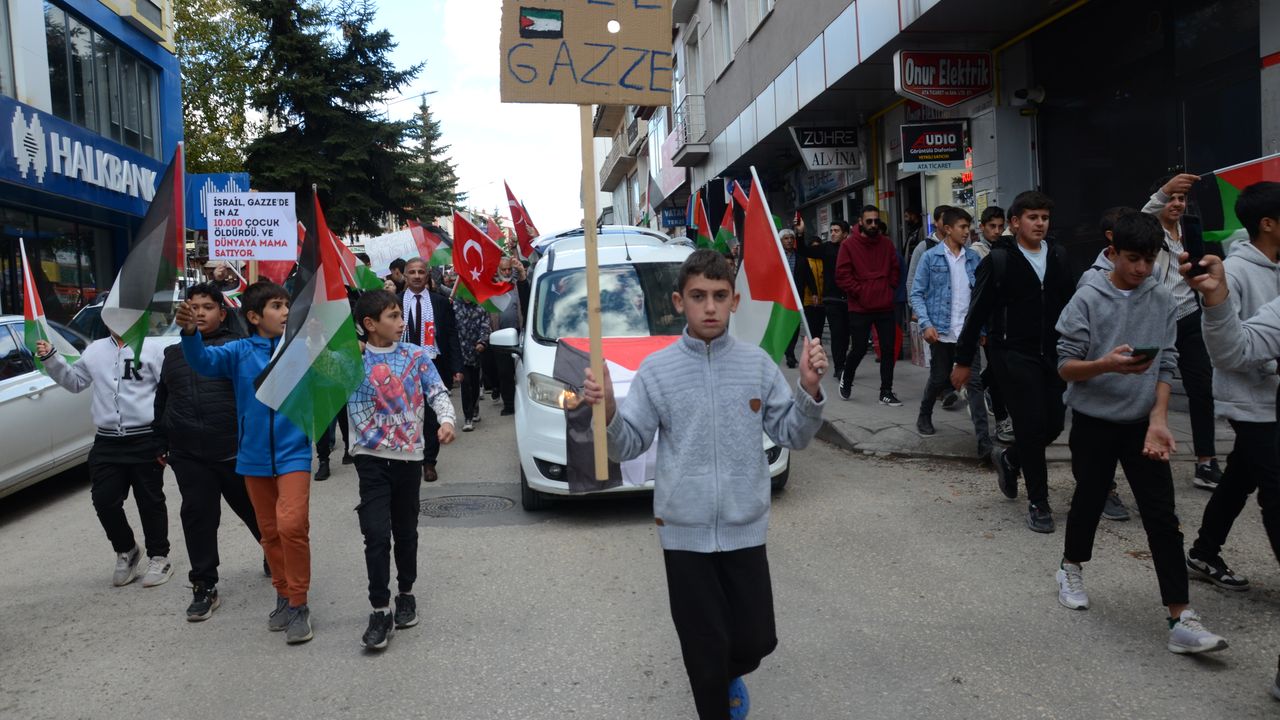 Konuşmaların ardından alanda toplanan yaklaşık bin kişi, ellerinde "Kudüs İslam'ındır, Özgür Filistin" yazılı döviz, Türk ve Filistin bayraklarıyla tekbir getirerek yaklaşık 2 kilometre yürüdü.